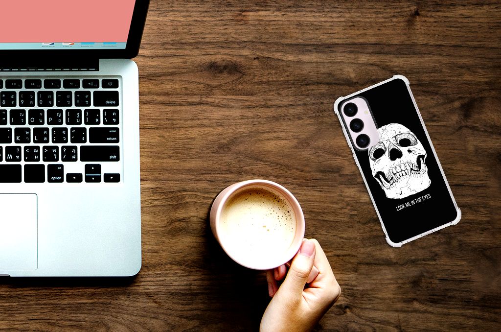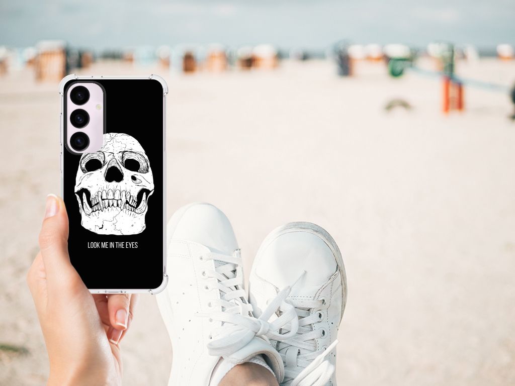 Ben je op zoek naar een uniek telefoonhoesje voor je Samsung Galaxy S24 Plus? Dan ben je bij B2C Telecom aan het juiste adres! Speciaal voor jou hebben we dit prachtige Skull Eyes design in onze collectie hoesjes opgenomen. Het design wordt bedrukt op een Extreme Case en is gemaakt van flexibel rubber. Het hoesje is perfect voor de actieve smartphonegebruiker door de opstaande randen/hoeken. Denk aan mensen die veel sporten, reizen of wandelen en net iets meer zekerheid willen als het op hun geliefde telefoon aankomt. Het design wordt alleen aan de bovenkant van het hoesje bedrukt en de randen blijven transparant. Aan de zijkanten zijn uitsparingen gemaakt waardoor je met gemak alle knoppen en poorten kunt bedienen. Wij adviseren om dit hoesje in combinatie met een screenprotector te gebruiken voor een langere levensduur van je telefoon. Wil je dit hoesje nog iets extra's geven? Voeg dan gratis je naam of een quote toe! Is dit design hoesje toch niet helemaal wat je zocht? Ontwerp dan zelf een hoesje in ons ontwerpprogramma.