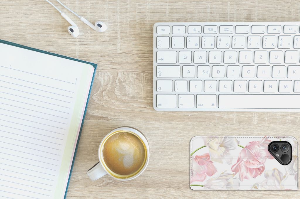 Een bosje bloemen doet een mens (en zijn smartphone) goed. De witte en roze bloemen op dit Fairphone 5 Smart Cover geven jouw smartphone een zeer mooie uitstraling. Je wordt er ook meteen een stuk rustiger van als je aan het appen of aan het bellen bent. Valt dan je telefoon op de grond, dan zal er dankzij de stand case met het design Lovely Flowers ontstaan. Onze stand cases met roze en witte bloemen zien er zeer prettig uit en zijn heel praktisch, wat blijkt uit onder meer het vakje aan de binnenkant en de handige standaard waarmee je de smartphone rechtop op tafel neer kunt zetten. De roze en witte bloemen passen goed op alle zijden van de case. Op deze stand case van leer en TPU (houder aan de binnenkant) kun je trouwens ook je eigen bloemige ontwerp zetten. In een paar simpele stappen maak je zelf een stand hoesje met daarop jouw mooiste bloemen.