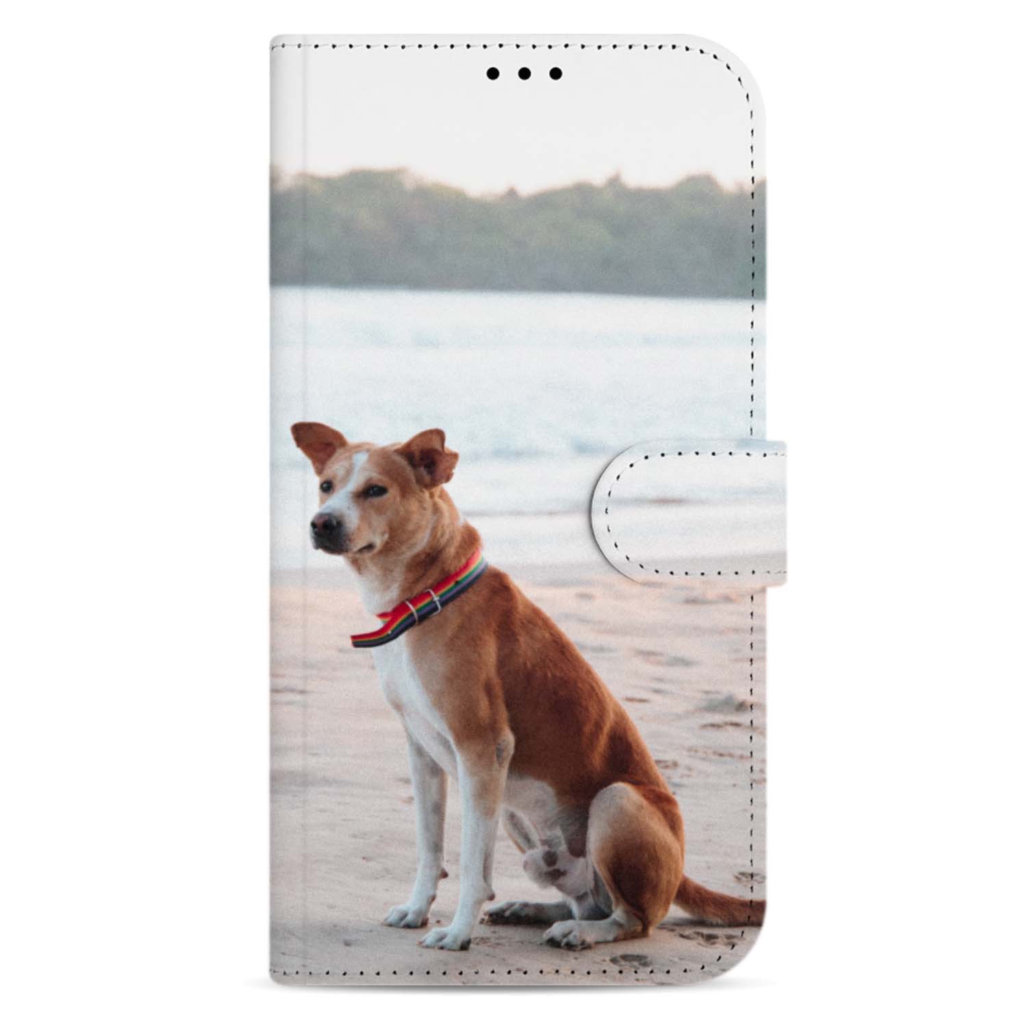 Fotohoesje Maken Apple iPhone 13. Ben je op zoek naar een originele en unieke bescherming voor je telefoon? Dan ben je bij B2C Telecom aan het juiste adres! Je kunt via onze website gemakkelijk een telefoonhoesje ontwerpen met foto's, tekst of bedrijfslogo. De mogelijkheden zijn eindeloos. Wees creatief en upload foto's of plaatjes van je kinderen, huisdieren, familie, hobby of favoriete voetbalclub. De foto's of plaatjes kun je in de gewenste grootte plaatsen of draaien voor een speels effect. Maak het hoesje persoonlijker door je naam of quote toe te voegen. Je kunt kiezen uit verschillende lettertypes; van strak tot vetgedrukt of ga je liever voor iets sierlijks? Het kan allemaal! De kers op de taart is natuurlijk de toevoeging van een glossy-effect! Kies uit verschillende effecten en jouw hoesje wordt subtiel bedrukt met een glossy-effect. Kortom, wij bieden verschillende mogelijkheden om jouw hoesje zo persoonlijk en uniek mogelijk te maken! Jouw ontwerp wordt bedrukt op een wit hoesje gemaakt van kunstleer. De binnenkant van het hoesje is donkergrijs en heeft drie vakjes voor een pasje. De houder waar je je telefoon in vast zet, is gemaakt van TPU. Door het lipje blijft het hoesje stevig dicht. Overtuigd? Ontwerp dan vandaag nog je eigen telefoonhoesje en ontvang jouw ontwerp binnen een aantal werkdagen in huis!