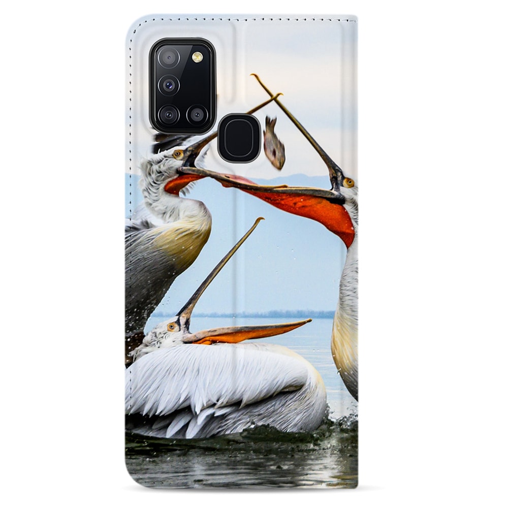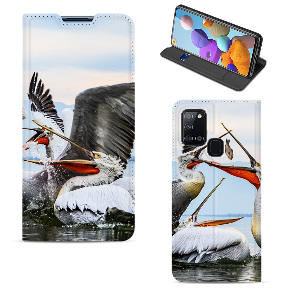 Galaxy A21s Hoesje Maken met Foto. Ben je op zoek naar een originele en unieke bescherming voor je telefoon? Dan ben je bij B2C Telecom aan het juiste adres! Je kunt via onze website gemakkelijk een telefoonhoesje ontwerpen met foto's, tekst of bedrijfslogo. De mogelijkheden zijn eindeloos. Wees creatief en upload foto's of plaatjes van je kinderen, huisdieren, familie, hobby of favoriete voetbalclub. De foto's of plaatjes kun je in de gewenste grootte plaatsen of draaien voor een speels effect. Maak het hoesje persoonlijker door je naam of quote toe te voegen. Je kunt kiezen uit verschillende lettertypes; van strak tot vetgedrukt of ga je liever voor iets sierlijks? Het kan allemaal! De kers op de taart is natuurlijk de toevoeging van een glossy-effect! Kies uit verschillende effecten en jouw hoesje wordt subtiel bedrukt met een glossy-effect. Kortom, wij bieden verschillende mogelijkheden om jouw hoesje zo persoonlijk en uniek mogelijk te maken! Jouw ontwerp wordt bedrukt op een wit hoesje gemaakt van kunstleer. De binnenkant van het hoesje is donkergrijs en heeft één vakje voor een pasje. De houder waar je je telefoon in vast zet, is gemaakt van transparante TPU. Door de magneten aan de binnenkant, blijft het hoesje stevig dicht. Een ander voordeel is dat het hoesje een stand-case functie heeft voor als je graag filmpjes kijkt op je telefoon. Overtuigd? Ontwerp dan vandaag nog je eigen telefoonhoesje en ontvang jouw ontwerp binnen een aantal werkdagen in huis!
