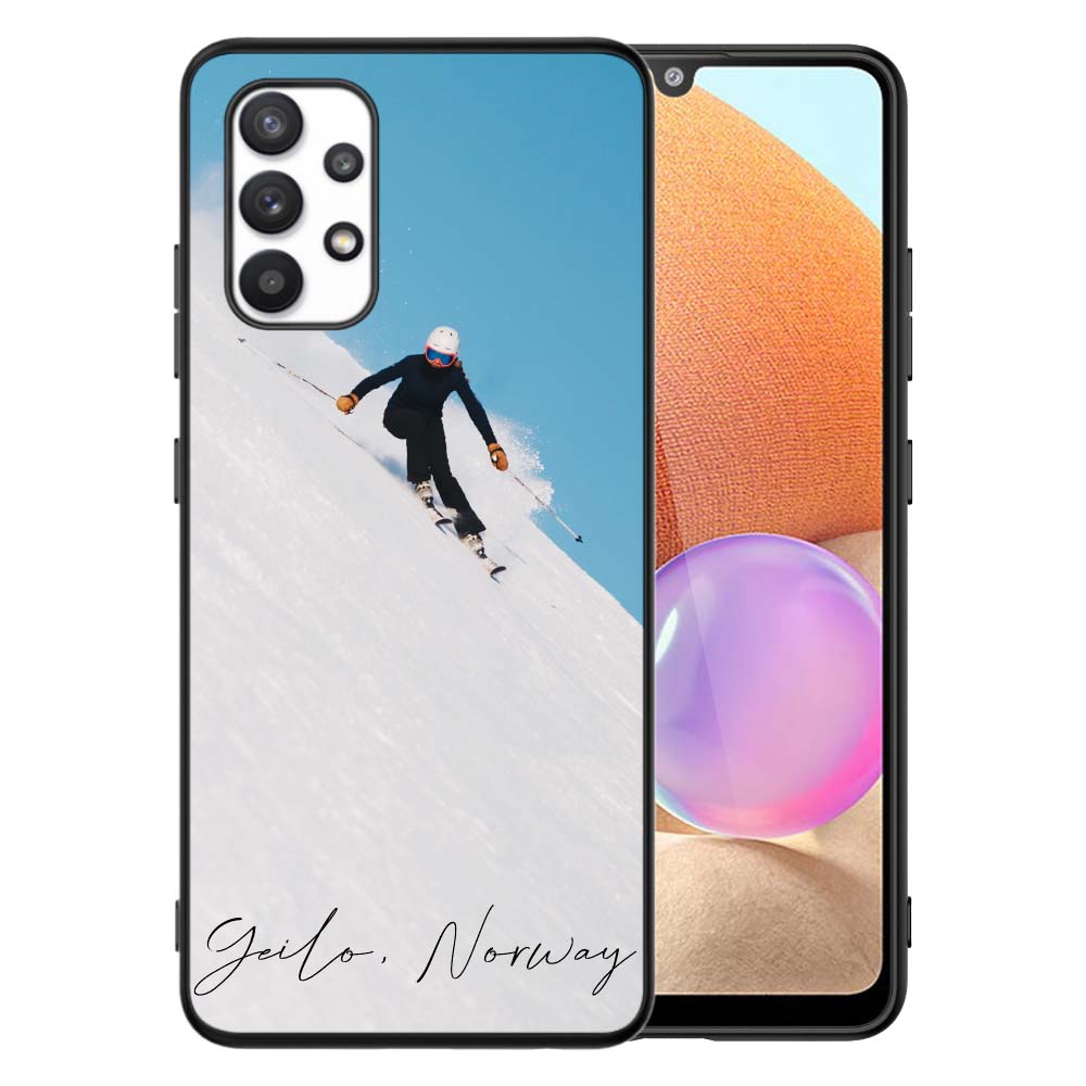 Samsung Galaxy A32 5G Enterprise Editie | A32 4G Back Cover Hoesje Ontwerpen met Foto. Ben je op zoek naar een originele en unieke bescherming voor je telefoon? Dan ben je bij B2C Telecom aan het juiste adres! Je kunt via onze website gemakkelijk een telefoonhoesje ontwerpen met foto's, tekst of bedrijfslogo. De mogelijkheden zijn eindeloos. Wees creatief en upload foto's of plaatjes van je kinderen, huisdieren, familie, hobby of favoriete voetbalclub. De foto's of plaatjes kun je in de gewenste grootte plaatsen of draaien voor een speels effect. Maak het hoesje persoonlijker door je naam of quote toe te voegen. Je kunt kiezen uit verschillende lettertypes; van strak tot vetgedrukt of ga je liever voor iets sierlijks? Het kan allemaal! De kers op de taart is natuurlijk de toevoeging van een glossy-effect! Kies uit verschillende effecten en jouw hoesje wordt subtiel bedrukt met een glossy-effect. Kortom, wij bieden verschillende mogelijkheden om jouw hoesje zo persoonlijk en uniek mogelijk te maken! Jouw ontwerp wordt bedrukt op gripcase hoesje gemaakt van een mix van hardcase en TPU. In het hoesje zijn de nodige uitsparingen gemaakt waardoor je met gemak alle poorten en knoppen kunt bedienen. Enkel de voorzijde van het hoesje worden bedrukt. De randen blijven zwart. Overtuigd? Ontwerp dan vandaag nog je eigen telefoonhoesje en ontvang jouw ontwerp binnen een aantal werkdagen in huis!