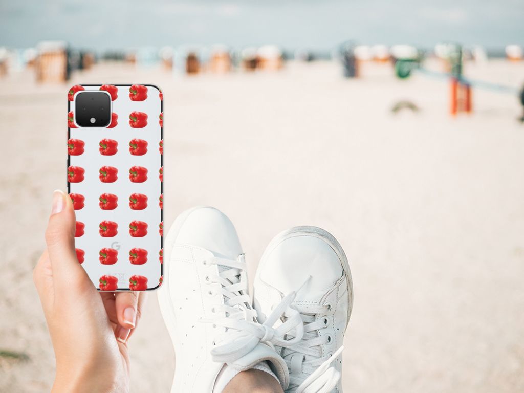 Er zit pit in jouw Google Pixel 4 Siliconen Case dankzij dit design met rode paprika’s. Paprika’s zijn er in allerlei kleuren en vormen en ze hebben gemeen dat ze heel erg gezond zijn. De rode paprika’s op deze case staan op een grijs met witte geblokte achtergrond en vormen een opvallende verschijning. Heb jij ooit iemand in je nabije omgeving rond zien lopen met een design hoesje met rode paprika’s? Waarschijnlijk niet. Dit hoesje wordt alleen aan de bovenkant bedrukt met paprika’s en is zeer flexibel. De randen van het hoesje blijven transparant en worden niet bedrukt. Met dit hoesje past jouw telefoon altijd in je broekzak. Zeker weten dat je met dit hoesje met rode paprika’s een smartphone accessoire te pakken hebt waarmee je jezelf in de schijnwerpers zet. Als je andere kleuren paprika’s op je hoesje wilt, raden we je aan ons assortiment design hoesjes te bekijken of zelf een hoesje te ontwerpen.