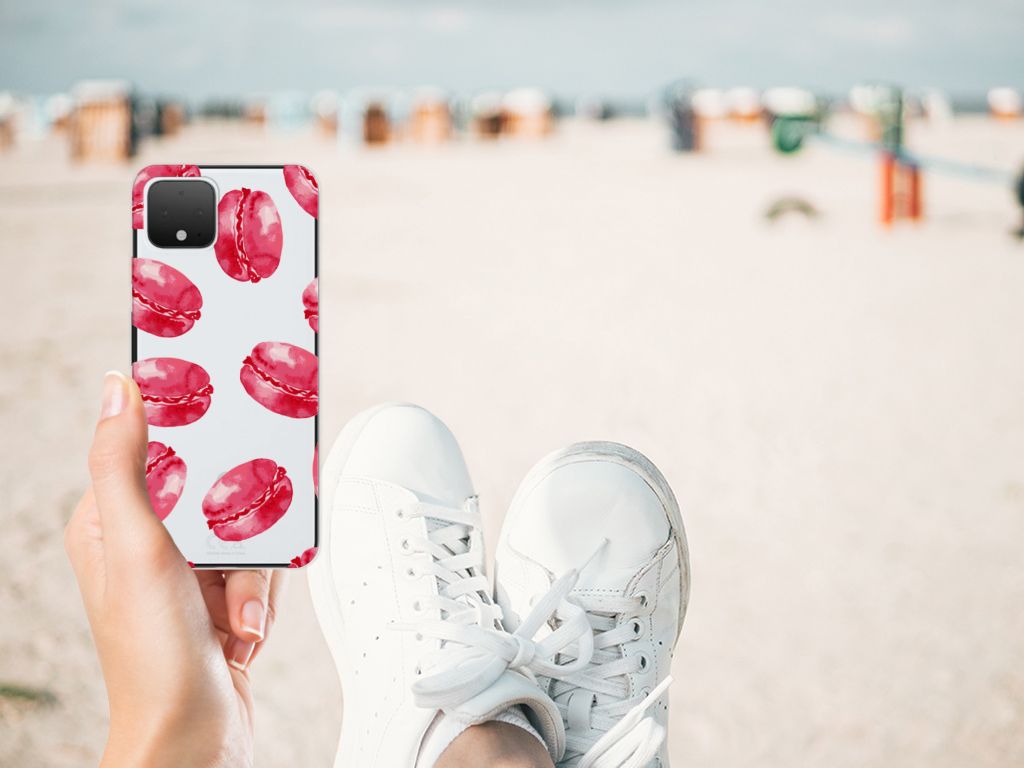 Dit tpu hoesje met Pink Macarons is een zeer opvallende bescherming voor jouw smartphone. Macarons zijn Franse koekjes: kleine, rond en luchtig. Ze worden in veel verschillende smaken gemaakt, herkenbaar aan de verschillende kleuren zoals chocolade (donkerbruin), mokka (middenbruin), kersen (rood), pistache (groen), aardbei (roze), framboos (karmijn). Deze kleuren kun je niet allemaal zien op dit fraaie design hoesje met roze macarons. Heb je altijd al een Google Pixel 4 Siliconen Case willen hebben met roze macarons? Grijp dan nu je kans. Deze case heeft zeer veel goede eigenschappen, zoals elastisch vermogen, flexibiliteit en schokbestendigheid. Dit design hoesje met roze macarons wordt aan de bovenkant bedrukt, de zijkanten blijven doorzichtig. De case heeft opstaande randen aan de voorzijde en beschermt samen met een screenprotector jouw telefoon perfect. De case heeft ook een handige standaard.