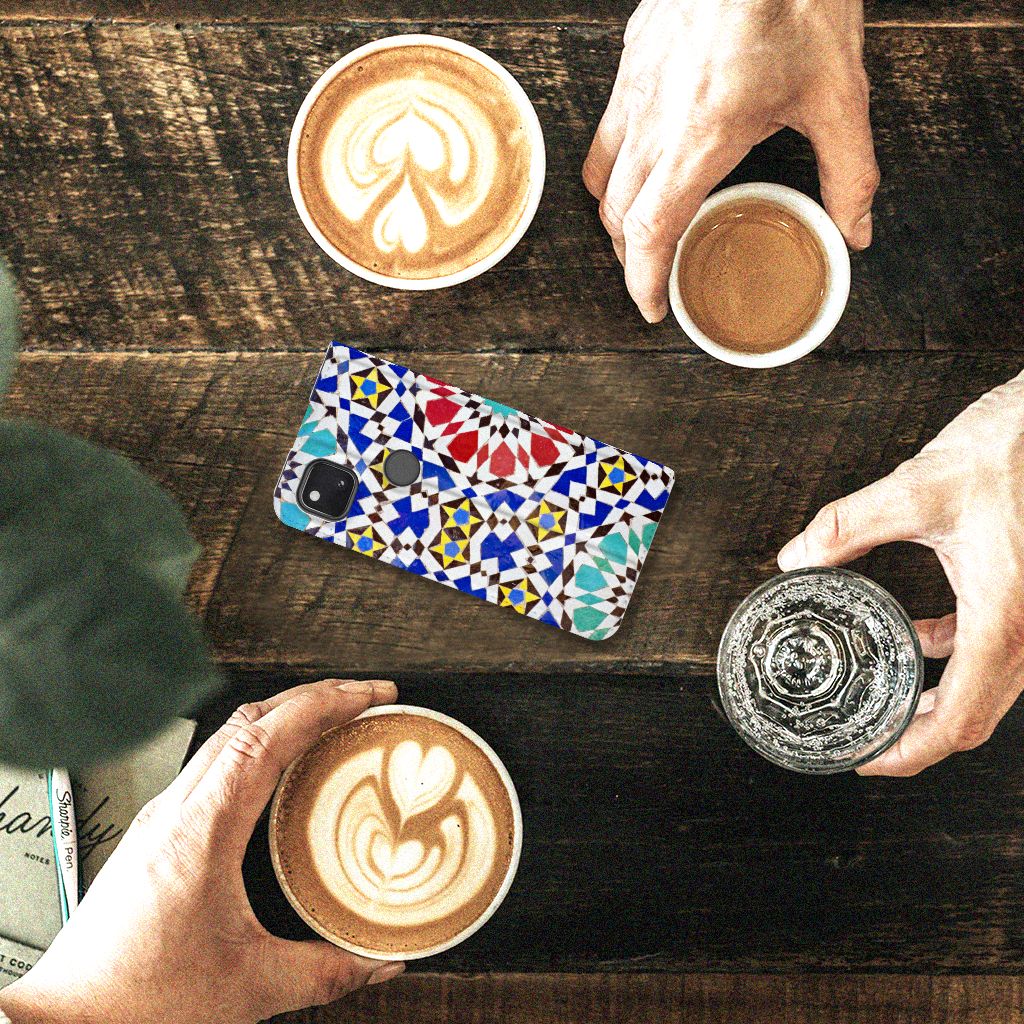 Aan design hoesjes met kunstvormen geen gebrek in onze uitgebreide collectie. Wat dacht je van dit design hoesje met Mozaïek . Dit is een kunstvorm waarbij een grote afbeelding wordt gemaakt uit een groot aantal kleine gekleurde steentjes (tesserae), die in een vloer of wand worden gemetseld. Deze gekleurde steentjes zie je terug op deze stand case met design van mozaïek. Een stand case is een van de veiligste cases die er bestaan. Een Google Pixel 4a Standcase met print zorgt voor een volledige bescherming van je smartphone en wordt aan alle zijden bedrukt met mozaïek. Verder is de houder aan de binnenzijde van TPU. De Grieken en Romeinen beheersten de kunst al. Op diverse plaatsen in Europa zijn mozaïeken teruggevonden die tot op de dag van vandaag goed bewaard zijn gebleven. Met een hoesje met mozaïek blijft jouw telefoon in tact. Je pasje en kun je in het vakje aan de binnenzijde stoppen. De case heeft ook een standaard.