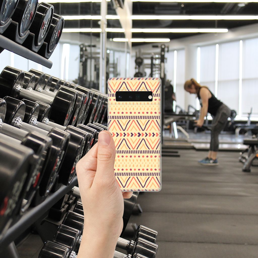 De Azteken leefden tussen 1200 en 1521 in het huidige Mexico. De mooie Aztec-patronen waar zij bekend om stonden, zien we nu nog op kleding, stoffen en tassen. Wie had toen kunnen bedenken dat we diezelfde prints honderden jaren later zelfs op een telefoonhoesje zouden vinden? Dit kleurrijke Aztec Yellow-hoesje is perfect voor iedereen die een stukje geschiedenis bij zich wil dragen maar ook gewoon een mooi patroon op zijn hoesje wil. Dit vrolijke, kleurrijke ontwerp staat op een TPU bumper voor de Google Pixel 6 Pro. TPU is flexibel en onbreekbaar. Zo is je telefoon aan de achterkant en de randen heel goed beschermd. De case is aan de bovenkant bedrukt, de randen blijven transparant.