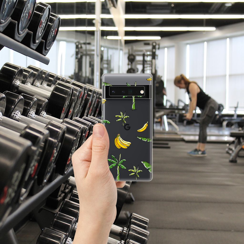 Heb jij al zin om op vakantie te gaan? Dat krijg je hoe dan ook als je één blik werpt op dit vrolijke hoesje voor je Google Pixel 6 Pro met Banana Tree design. Het fleurige tafereel van bananenbomen, bananenbladeren en bananen doet je gedachten afdwalen naar paradijselijke bountystranden met azuurblauwe zee en helderwitte zandpartijen. Kortom: dit hoesje is goed voor je humeur. Naast het luchtige design zijn daar nog meer redenen voor, want dankzij de stevige materialen weet je zeker dat dit TPU Case je telefoon altijd optimaal beschermt Dit hoesje wordt alleen aan de bovenkant bedrukt en is zeer flexibel. De randen van het hoesje blijven transparant. Met dit hoesje breng je jezelf in zomerse sferen en gun je jezelf een krasvrije telefoon.