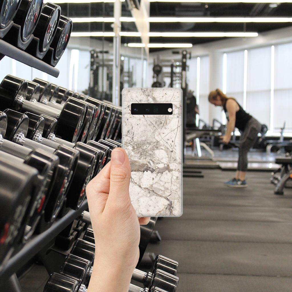 Dit design hoesje met Marmer Beige is voor de artistieke personen onder ons. De Grieken en Romeinen wisten het steen al te waarderen door het als bouw- en bekledingsmateriaal toe te passen. Naast het witte Carrara marmer met haar zacht grijze geaderde belijning zijn de diverse marmersoorten in een ruim kleurenpallet te krijgen. We hebben verschillende kleuren op design hoesjes gezet, zoals in dit geval beige marmer. Dit is een Google Pixel 6 Pro TPU Siliconen Hoesje met marmer in beige kleur. Het marmer wordt bedrukt op de voorkant van een tpu case, die beschikt over opstaande randen aan de voorkant en goed combineert met een screenprotector. De rijkheid aan kleuren en varianties in afwerking geeft designers de vrijheid om met marmer hele mooie architectonische projecten te realiseren. Wij hebben onze designer ook veel vrijheid gegeven. Het resultaat zie je terug in deze tpu case met beige marmer, die jouw smartphone goed beschermt. De zijkanten van de case worden niet bedrukt met marmer.
