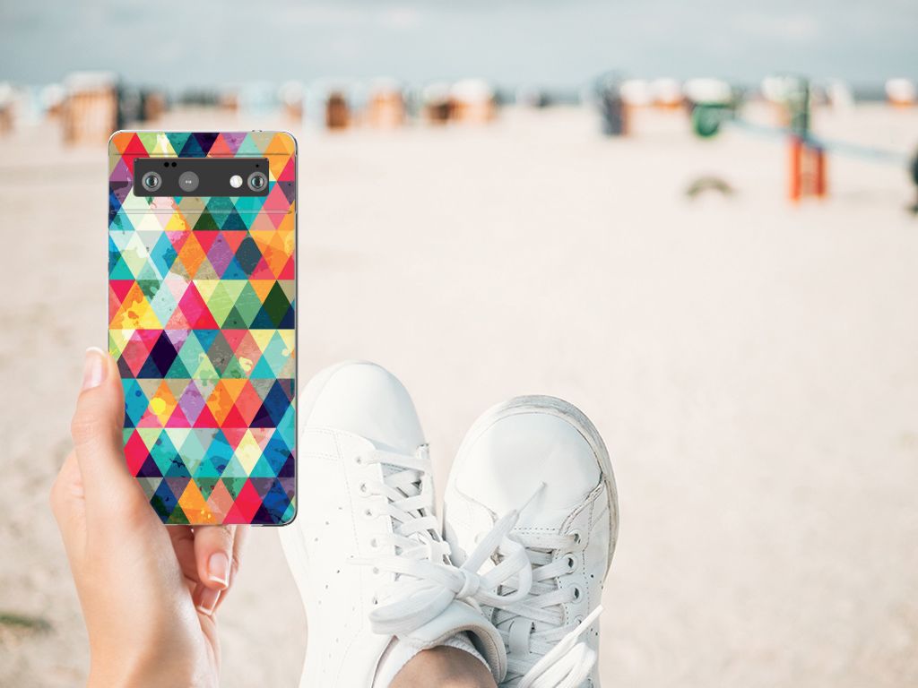 Van dit geruite design hoesje moet je een beetje houden. Maar als je het eenmaal in bezit hebt, ben je waarschijnlijk binnen no time verkocht. Het design heeft ruitjes in alle kleuren van de regenboog en door de grijze achtergrond kan het hoesje enigszins druk overkomen. Maar tegelijkertijd is dit de kracht van het hoesje. Met dit design hoesje Geruit zal je namelijk heel erg opvallen. Dit is voor veel vooral jonge smartphone gebruikers een belangrijk voordeel. Deze geruite print staat op een Google Pixel 6 TPU bumper. Dit zeer flexibele smartphone hoesje heeft alle nodige uitsparingen en past altijd in je broekzak. De case is aan de bovenkant bedrukt, de randen blijven transparant.