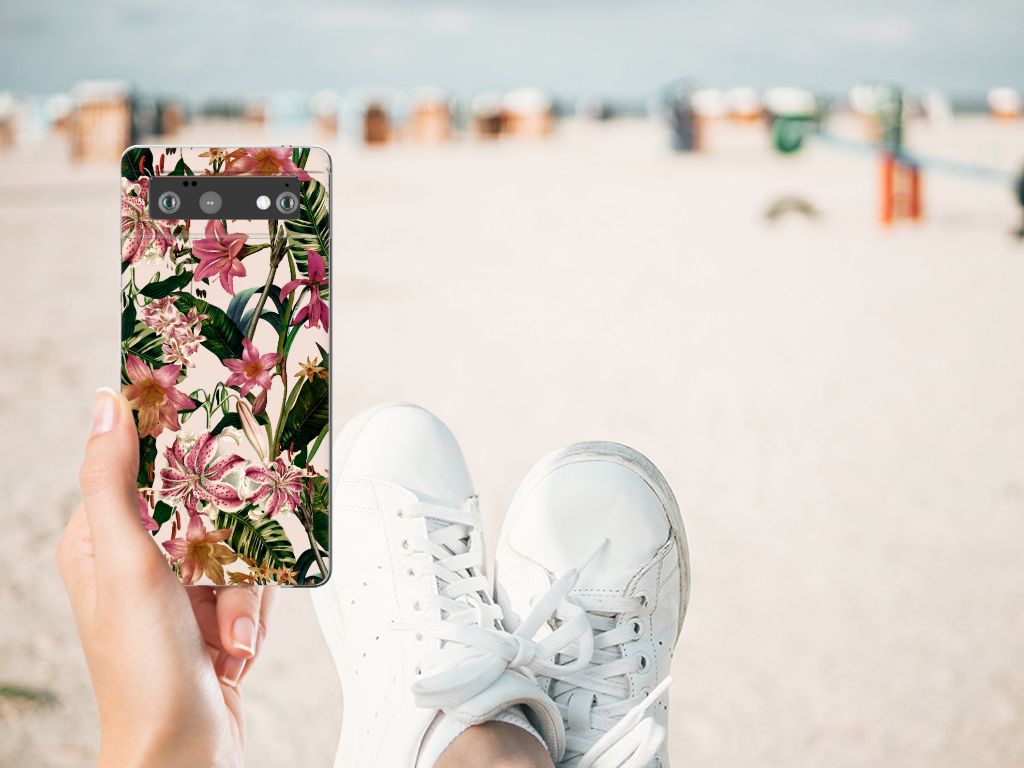 Dit Flowers design is een zegen voor de mens en zijn smartphone. De paarswitte bloemen en groene bladeren op deze Google Pixel 6 TPU Case geven jouw smartphone een zeer sierlijke uitstraling. Je wordt er ook meteen vrolijker van als je aan het appen, mailen of aan het bellen bent. Valt dan je telefoon op de grond, dan zal er dankzij de tpu case met paarswitte bloemen en groene bladeren geen schade ontstaan. Helemaal niet als je er een screenprotector bij hebt gekocht. Onze tpu cases met paarswitte bloemen en groene bladeren zien er zeer prettig uit en zijn heel praktisch, getuige onder meer de opstaande randen en het flexibele materiaal. Alleen de achterkant van de tpu case wordt bedrukt met paarswitte bloemen en groene bladeren, de randen blijven transparant. Op deze tpu case kun je trouwens ook in no time zelf foto’s van jouw favoriete bloemen zetten.