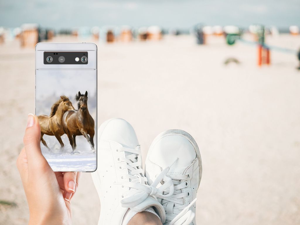 Voor de paardenliefhebbers onder ons hebben we onze collectie uitgebreid met dit design hoesje met print van paarden. Vroeger hield de mens vooral werkpaarden, inmiddels hebben we vriendschap gesloten met het paard. Vandaar dat het ook een favoriet dier is op onze smartphonehoesjes, zoals deze tpu case. Een TPU Hoesje voor de Google Pixel 6 met Paarden is niet alleen super mooi en chique, maar ook nog eens zeer flexibel. Verder is de case schokabsorberend en heeft het opstaande randen. Zie je liever je eigen paard terug op een hoesje. Dat kan! Door zelf een uniek hoesje te ontwerpen, met eigen foto’s en teksten. De TPU case wordt aan de bovenzijde bedrukt, de zijkanten blijven transparant.