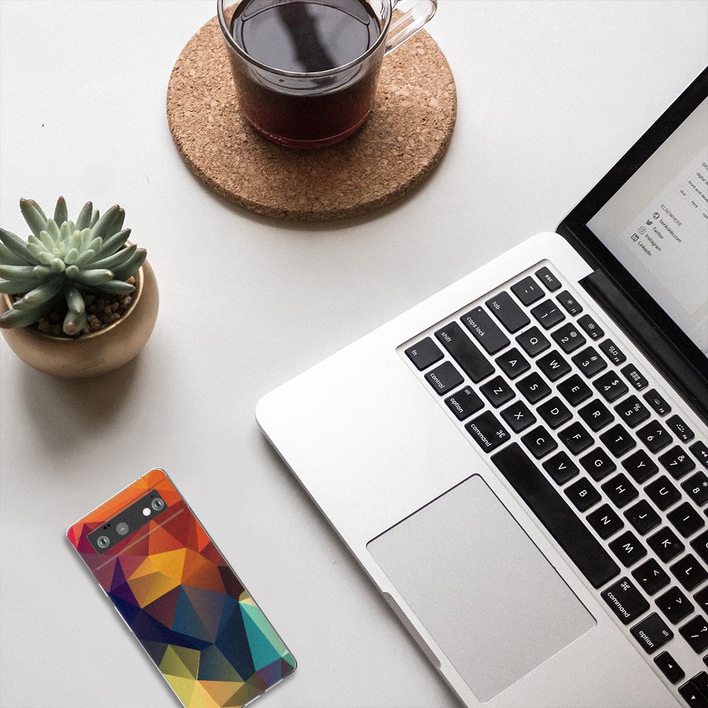 Veelkleurige driehoeken die samen eindeloze asymmetrische patronen lijken te vormen. Het is het abstracte schouwspel dat op dit fraaie hoesje voor je Google Pixel 6 direct de aandacht trekt noemen we voor het gemak trekt noemen we voor het gemak Polygon Color. De een ziet er een berglandschap in, de ander piramides. Wat zie jij erin? Zeker is in elk geval dat de aanblik van dit fascinerende ontwerp je niet snel gaat vervelen. Het kleurige spel van lijnen en vlakken blijft eindeloos boeien en geeft jouw TPU Hoesje een hippe en kunstzinnige uitstraling. De kracht die het lijnenspel uitstraalt, komt ook terug in het hoesje zelf. Dit hoesje wordt alleen aan de bovenkant bedrukt en is zeer flexibel. De randen van het hoesje blijven transparant. Wat wil je nog meer?