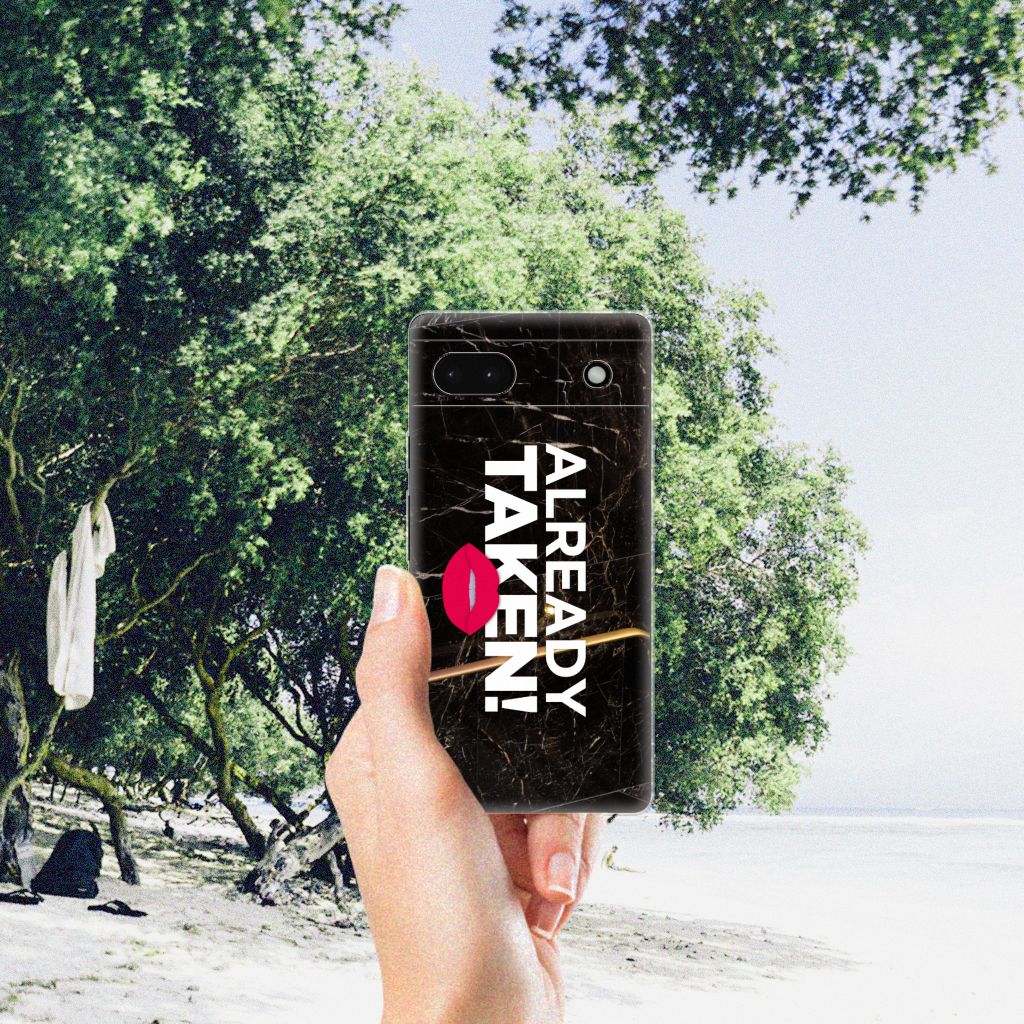 Met deze Google Pixel 6A Siliconen hoesje met naam met Already Taken Black tekst maak je duidelijk dat jouw smartphone een kostbaar bezit is, waar je zeer lang over wilt beschikken. Je telefoon neem je waarschijnlijk vaak ter hand, dus dan zal de boodschap als je over dit hoesje beschikt zeker weten overkomen. De TPU case wordt alleen aan de bovenkant bedrukt en is zeer flexibel. De randen van het hoesje blijven transparant. Wil je een eigen tekst op je hoesje zetten? Dit kan ook, met onze Phone Case Designer. Deze unieke ontwerpmodule is ook geschikt om het design uit te breiden met foto’s, effecten en patronen.
