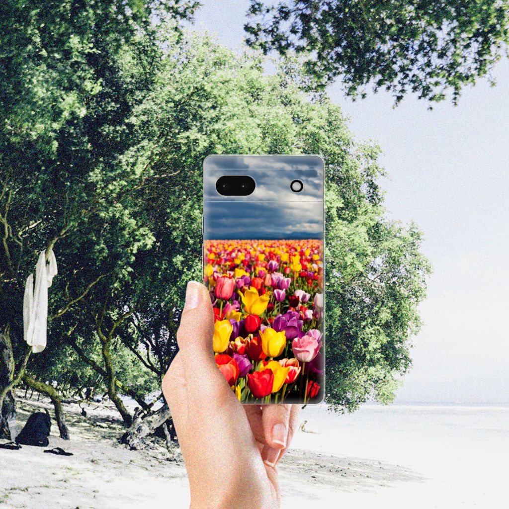 De tulp is een oer-Nederlandse bloem en heeft een lange geschiedenis. Deze Google Pixel 6A TPU Case met Tulpen ziet er bijzonder kleurrijk uit. Dit fleurige smartphone hoesje geeft een bijzondere bescherming van jouw apparaat. Tulpen zijn ideaal voor een kleurrijk begin van het tuinseizoen. Iedereen wordt er vrolijk van om te zien hoe deze bloemen het voorjaar kleur geven en het begin van de warmere tijd van het jaar aankondigen. Dan kan het toch niet anders of jij wordt heel erg blij van deze tpu case met tulpen? Deze tpu case is zeer flexibel en past altijd in je broekzak. Het materiaal is zeer elastisch en onbreekbaar. De case wordt niet aan alle zijden bedrukt met tulpen. De randen blijven transparant. Je kunt ook zelf een tpu case maken met daarop jouw favoriete bloem.