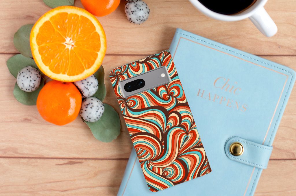 Voor de mensen die een beetje artistiek zijn, is er deze Google Pixel 7 Bookcase met kleuren in een soort van retro stijl. Je gaat een beetje terug in de tijd met deze stand case in allerlei felle kleuren en vreemde vormen. De opdruk op dit design hoesje is zeer duurzaam en gaat net zo lang mee als de case zelf. De Retro print wordt in ons eigen magazijn op het hoesje gezet, met speciale uv-inkt. De stand case heeft voldoende uitsparingen dus je hoeft de telefoon nooit uit dit retro design hoesje te halen. Deze case beschermt jouw telefoon aan alle kanten en beschikt over 1 opbergvakje en een speciale standaard. Het hoesje wordt afgesloten met een magneet aan de binnenzijde. De houder aan de binnenzijde van de retro hoes is van TPU.