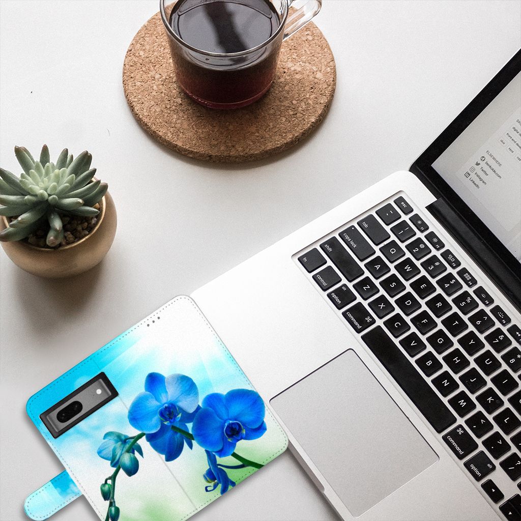 Google Pixel 7 Hoesje met magnetische sluitclip Orchidee Blauw