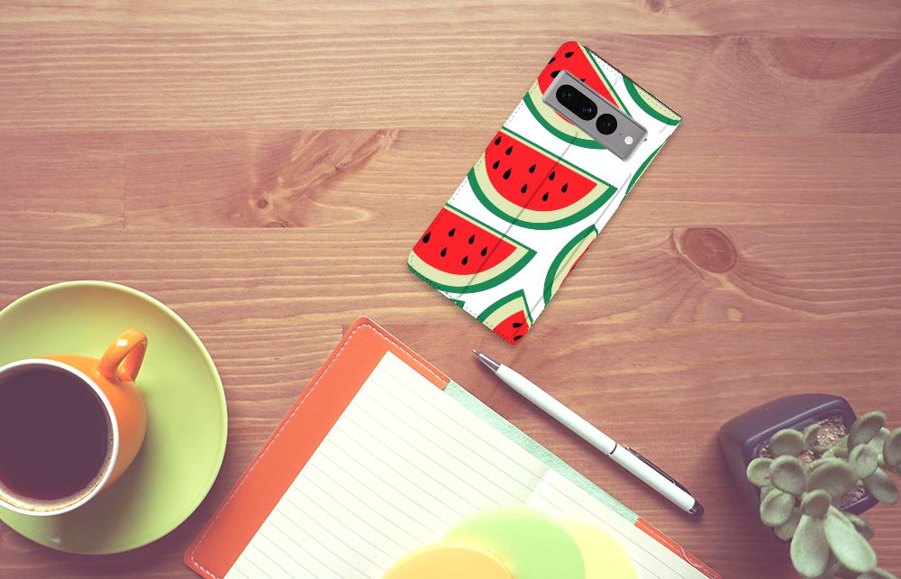 Watermeloenen zijn uitstekende dorstlessers, misschien dat je daarom juist in de zomermaanden extra enthousiast raakt van dit design hoesje Watermelons. Jij blijft gezond als je zo nu en dan een watermeloen neemt, jouw smartphone blijft in tact als je er deze Google Pixel 7 Pro Flip Style Cover omheen doet. De stand case beschermt jouw telefoon aan alle kanten en beschikt over een 1 opbergvakje en een speciale standaard. Het hoesje wordt afgesloten met een magneet aan de binnenzijde. De houder aan de binnenzijde is van TPU. Je kunt ook kiezen voor andere soorten fruit op je hoesje. Kijk maar eens naar onze andere design hoesjes op onze website.