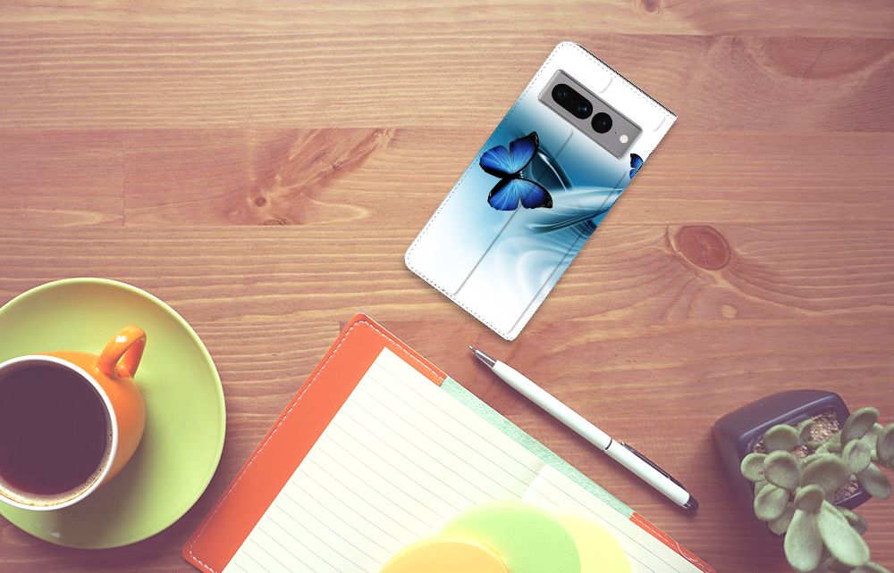 Deze vrolijke Google Pixel 7 Pro Hoesje maken met blauwe vlinders is een ware eyecatcher. De meeste vlinders hebben een onopvallende vleugelkleur, andere soorten hebben juist heldere en felle kleuren. Wij kunnen deze blauwe vlinders op een zeer handige stand case zetten. Deze hoesjes zijn het meest gewild. Met onze geavanceerde printer zetten we de afbeelding van vlinders op alle zijden van het hoesje. De case met vlinders heeft aan de binnenkant een houder waarin je jouw creditcard of ander pasje kwijt kunt. De case heeft bovendien een handige standaard. Verder is je telefoon natuurlijk maximaal beschermd met deze stand case met print van blauwe vlinders. De houder aan de binnenzijde van het design hoesje met vlinder print is van TPU.