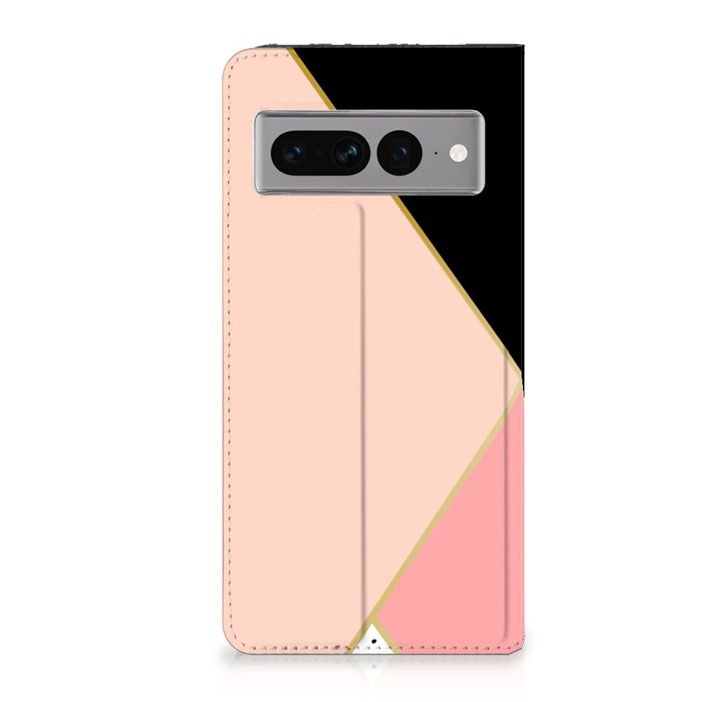 Google Pixel 7 Pro Print Stand Case Zwart Roze Vormen