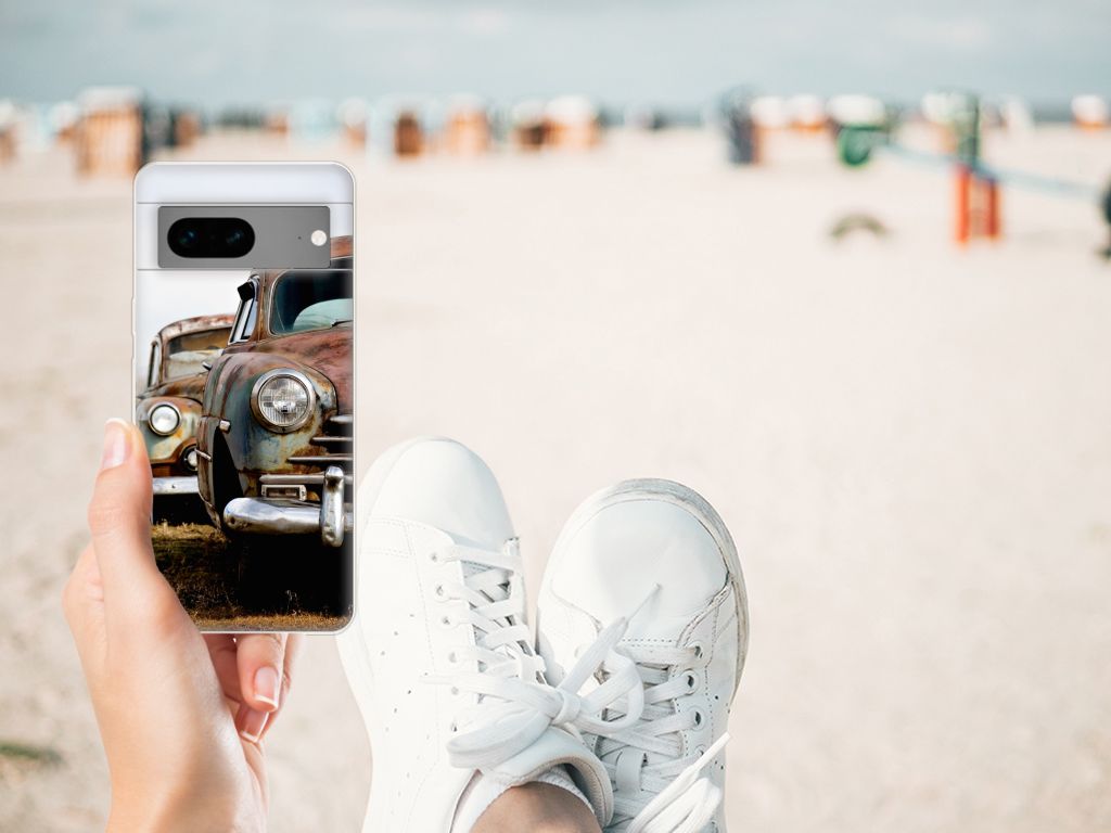Autoliefhebbers met een voorkeur voor vintage zullen in hun nopjes zijn met dit design hoesje. We hebben een boekhoesje met print van Vintage Auto speciaal op maat gemaakt voor jouw smartphone. Door de achtergrond van dit hoesje krijgt de case met vintage auto’s echt een mooie retro look. Een Google Pixel 7 Siliconen Hoesje met foto is een zeer flexibel hoesje. Dit komt onder andere door het elastische en onbreekbare materiaal waarvan de hoes is gemaakt. Verder is de case zeer praktisch. Wat denk je bijvoorbeeld van de opstaande randen aan de voorkant. Verder beschikt de case ook nog eens over alle noodzakelijke uitsparingen. Een TPU case wordt alleen aan de bovenkant bedrukt. De randen blijven volledig doorzichtig.