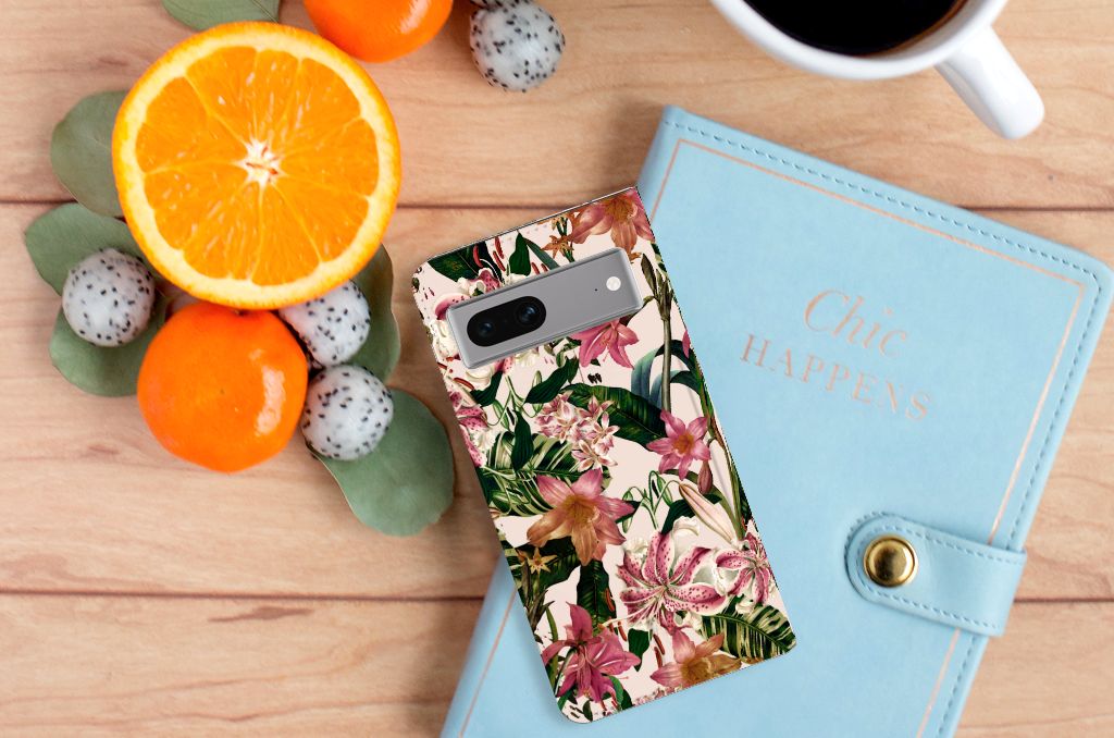 Dit Flowers design is een zegen voor de mens en zijn smartphone. De paarswitte bloemen en groene bladeren op deze Google Pixel 7 Smart Cover geven jouw smartphone een zeer sierlijke uitstraling. Je krijgt er meteen een goed gevoel bij als je aan het appen, mailen of aan het bellen bent. Valt dan je telefoon op de grond, dan zal er dankzij de stand case met paarswitte bloemen en groene bladeren geen schade ontstaan. Onze stand cases met paarswitte bloemen en groene bladeren bieden de allerbeste bescherming en zijn heel praktisch, wat blijkt uit onder meer het vakje aan de binnenkant en de handige standaard waarmee je de smartphone rechtop op tafel neer kunt zetten. De paarswitte bloemen en groene bladeren komen op alle zijden van de case te staan. Op deze stand case van leer en TPU (houder aan de binnenkant) kun je in no time zelf foto’s van jouw favoriete bloemen zetten.