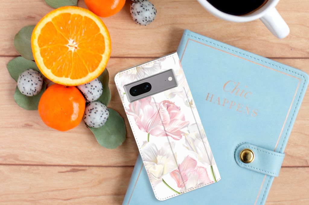 Google Pixel 7 Telefoonhoesje met Pasjes Pauw met Bloemen