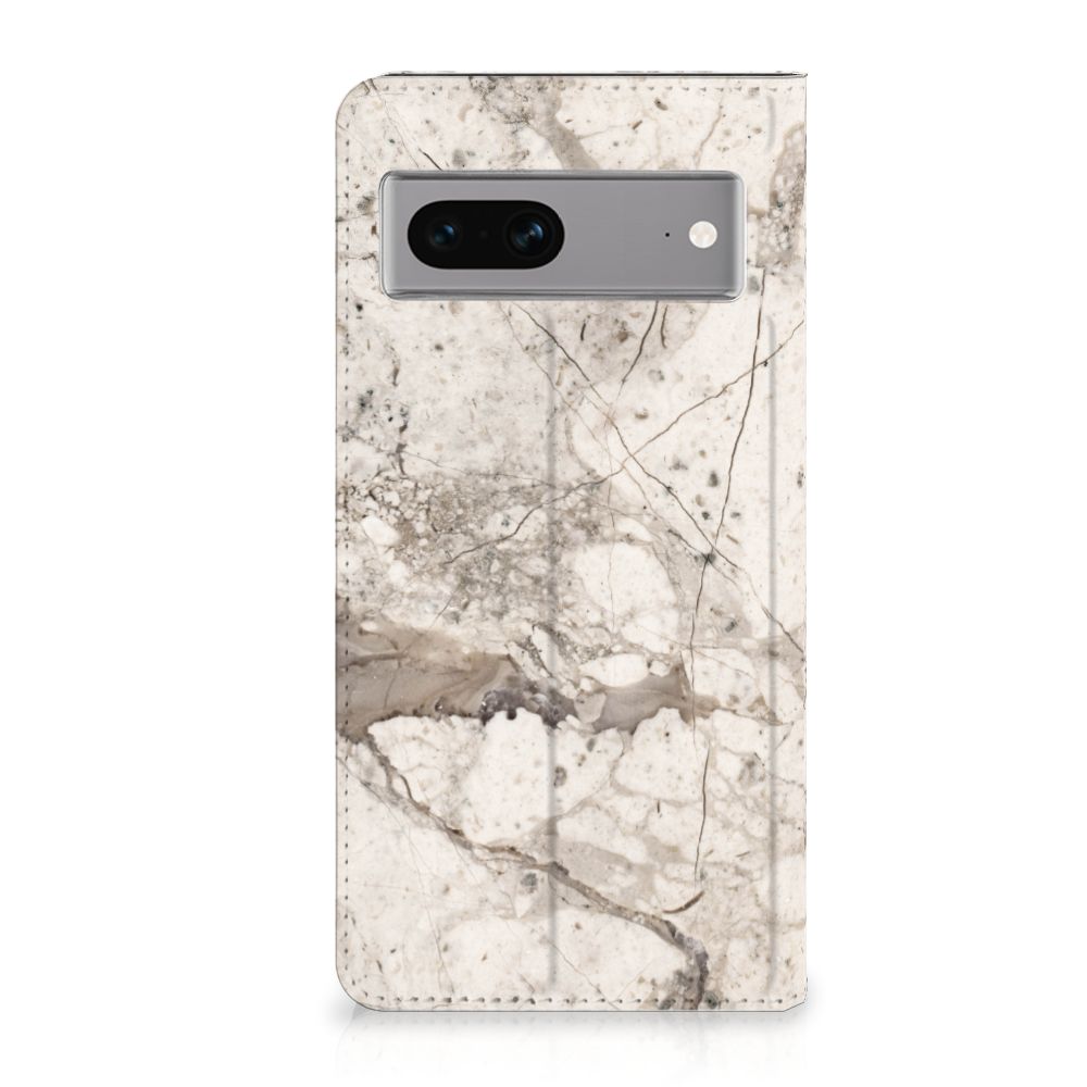 Dit design hoesje met Marmer Beige is voor de artistieke personen onder ons. De Grieken en Romeinen wisten het steen al te waarderen door het als bouw- en bekledingsmateriaal toe te passen. Naast het witte Carrara marmer met haar zacht grijze geaderde belijning zijn de diverse marmersoorten in een ruim kleurenpallet te krijgen. We hebben verschillende kleuren op design hoesjes gezet, zoals in dit geval beige marmer. Dit is een Google Pixel 7 Standcase met marmer in beige kleur. Het marmer wordt bedrukt op alle zijden van een stand case, die beschikt over 1 vakje voor een pasje en toebehoren en een magnetische sluiting aan de binnenkant. Verder heeft de case een houder van TPU. De rijkheid aan kleuren en varianties in afwerking geeft designers de vrijheid om met marmer hele mooie architectonische projecten te realiseren. Wij hebben onze designer ook veel vrijheid gegeven. Het resultaat zie je terug in deze stand case met beige marmer, dat de ideale bescherming voor jouw smartphone biedt.