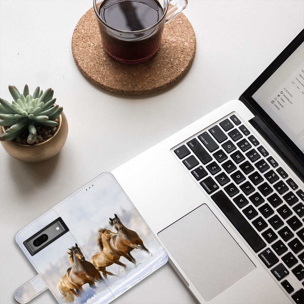 Google Pixel 7 Telefoonhoesje magneetsluiting met lipje Paarden