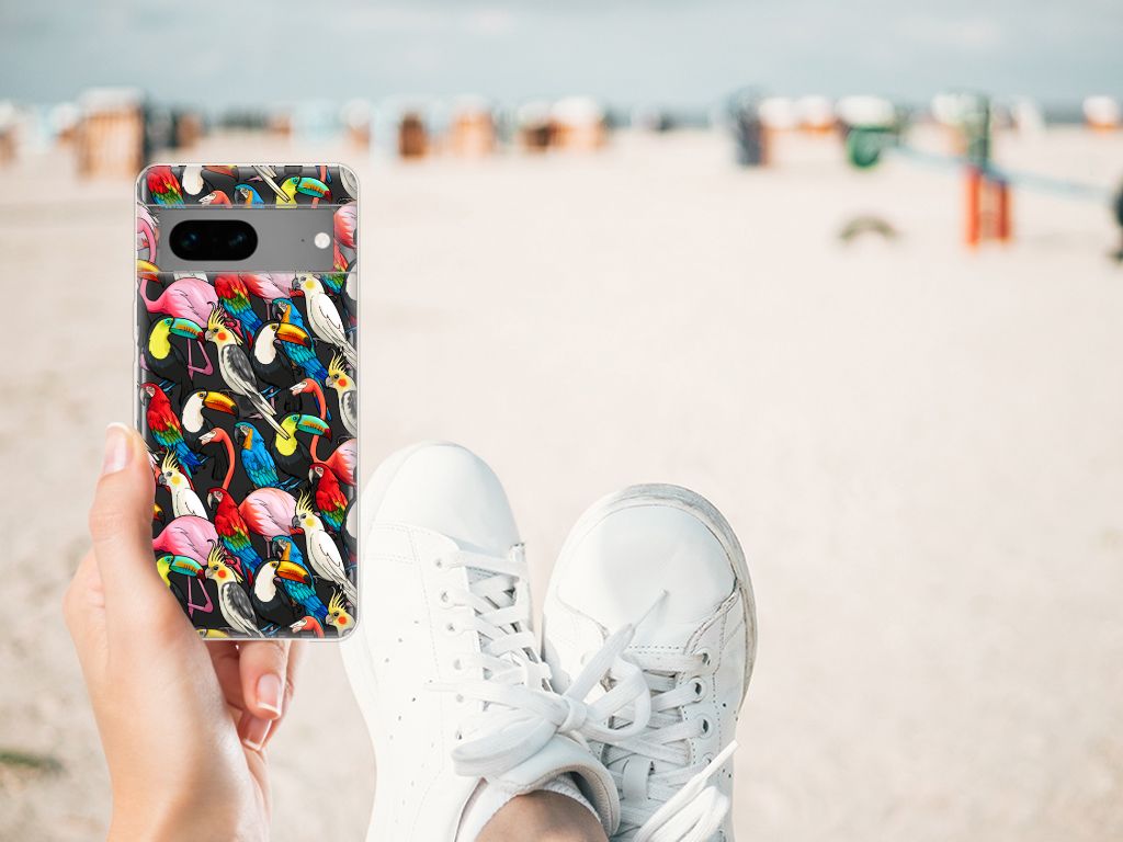 Dit exotische hoesje vol prachtige vogels is een genot voor het oog. Dankzij de felgekleurde toekans, papegaaien, flamingo’s en kaketoes op dit design word je meteen vrolijk als je naar dit hoesje kijkt. Je waant je meteen in de tropen met dit bonte gezelschap tegen een witte achtergrond. Het ontwerp staat op een TPU Hoesje voor de Google Pixel 7. TPU is een flexibel en onbreekbaar materiaal. Zo is je telefoon aan de achterkant en de randen heel goed beschermd. De case met het birds-design is aan de bovenkant bedrukt, de randen blijven transparant. Het TPU-hoesje is perfect te combineren met een screenprotector. Zo zijn je telefoon en je beeldscherm optimaal beschermd.