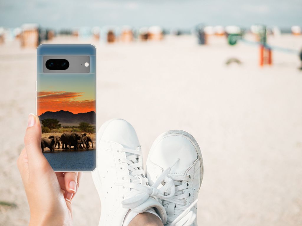 Dit hoesje is zo sterk als een olifant. Dat is goed nieuws, want jouw telefoon heeft een zeer goede bescherming nodig. Dat krijg je met dit design hoesje met print van Olifanten. De Afrikaanse olifant, het allergrootste landdier ter wereld, heeft waarschijnlijk het meest te lijden gehad van stroperij om het ivoor. Deze dieren verdienen dus een goede bescherming, net als jouw smartphone. Met een Google Pixel 7 TPU Hoesje met olifant erop krijg je dit zeker voor elkaar. De tpu case beschermt vooral de achterkant en zijkanten van je telefoon en is gemaakt van onbreekbaar materiaal. De sterke olifant komt zeer goed tot zijn recht op deze case, die zeer flexibel is. Alleen de bovenzijde van de case wordt bedrukt met olifanten, de zijkanten blijven transparant.