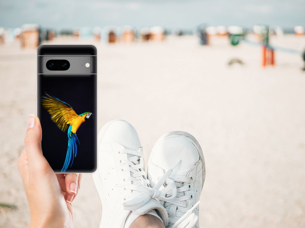 Dit design hoesje met Papegaai tegen een zwarte achtergrond is een zeer flexibele bescherming voor jouw smartphone. Dit komt vooral omdat deze print op een tpu case staat. Dit is een zeer buigzaam hoesje, dat de telefoon vooral aan de achterkant en zijkanten beschermt. De bovenkant van de Google Pixel 7 TPU Hoesje wordt bedrukt met deze schitterende print. De zijkanten blijven doorzichtig. Papegaaien zijn erg sociale vogels die voldoende aandacht en gezelschap nodig hebben. Als je er voor kiest om een papegaai aan te schaffen, is het een goed idee om een koppeltje te nemen. Koop je meerdere tpu cases met een papegaai, dan ga je automatisch minder betalen per hoesje. Wij hanteren een systeem van bundelkorting. Dus koop dit hoesje met opstaande randen voor een spotprijs.