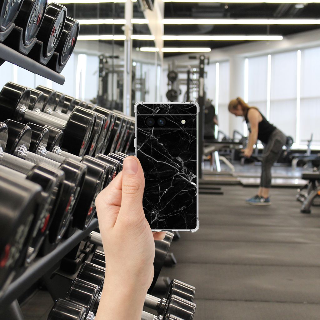 Google Pixel 7A Anti-Shock Hoesje Marmer Wit Zwart - Origineel Cadeau Man