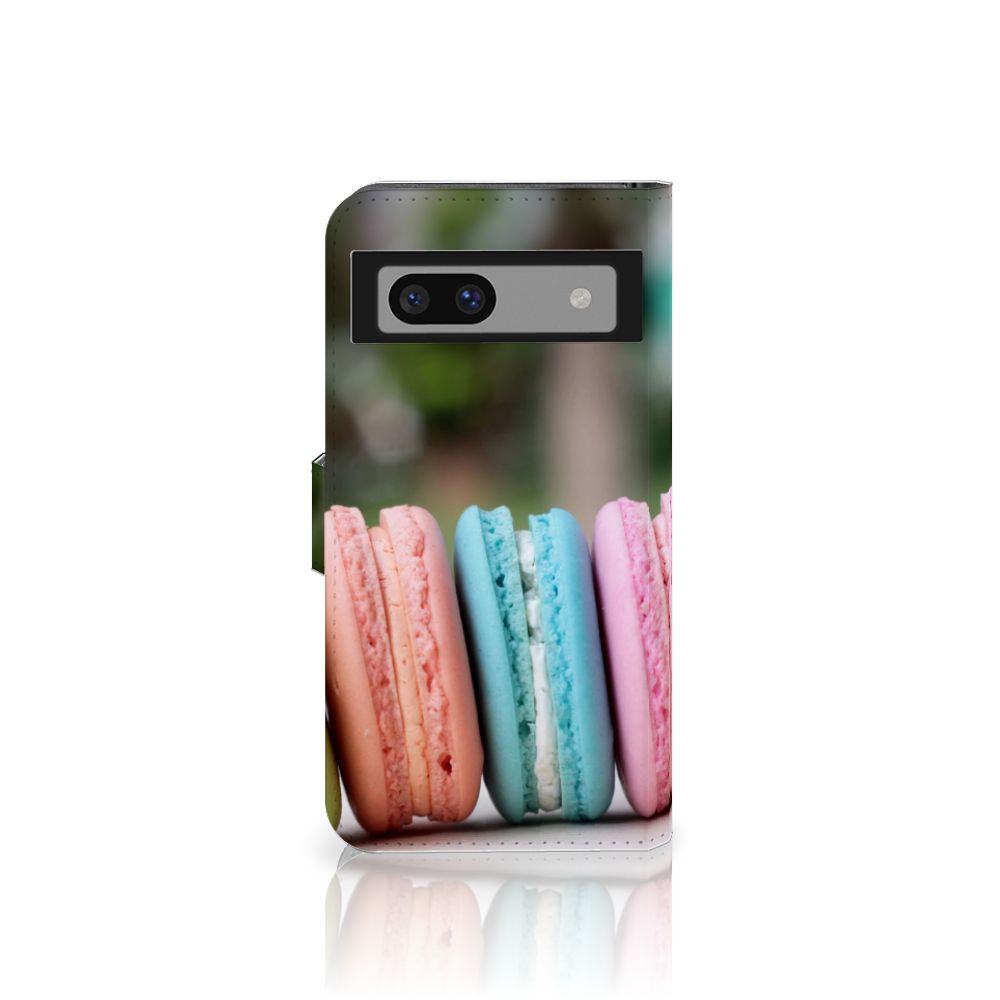 Dit hoesje met macarons is een zeer opvallende bescherming voor jouw smartphone. Macarons zijn Franse koekjes: kleine, rond en luchtig. Ze zijn aan elkaar geplakt met een zachte vulling. Ze worden in veel verschillende smaken gemaakt, herkenbaar aan de verschillende kleuren zoals chocolade (donkerbruin), mokka (middenbruin), kersen (rood), pistache (groen), aardbei (roze), framboos (karmijn), citroen (geel) en kokos (roomwit). Deze kleuren kun je natuurlijk ook zien op dit fraaie design hoesje met macarons. Heb je altijd al een Google Pixel 7A Book Cover willen hebben met macarons? Grijp dan nu je kans. Een boekhoesje heeft zeer veel goede eigenschappen, zoals opbergvakjes aan de binnenkant en een magnetische sluiting in de vorm van een lipje aan de buitenzijde. Dit design hoesje met macarons wordt aan alle zijden bedrukt, zelfs het lipje krijgt een afbeelding van een macaron. De houder aan de binnenkant van het hoesje is van TPU.