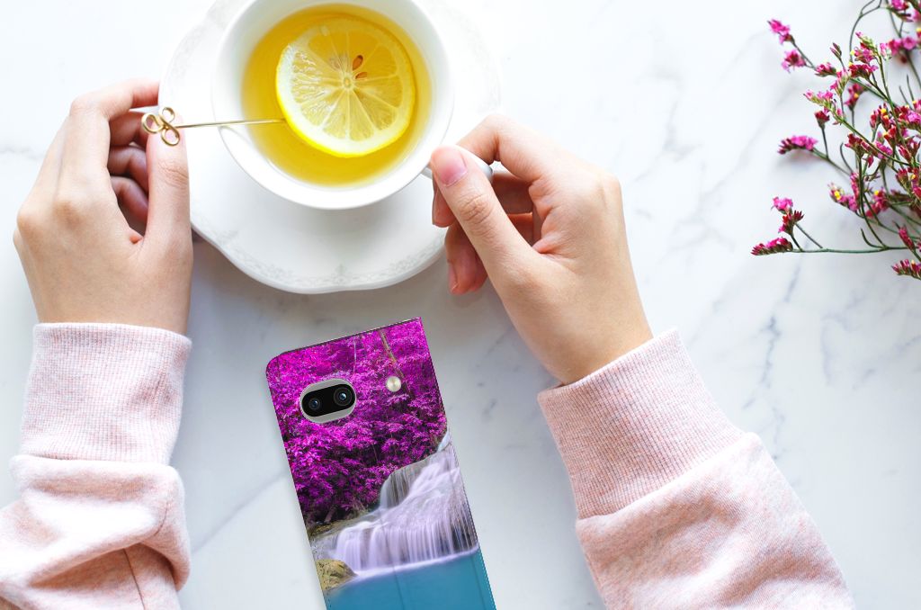 Van een waterval kun je een heel rustig gevoel krijgen, zeker als die op een Google Pixel 7A Book Cover staat dat jouw smartphone perfect beschermt tegen allerlei vormen van schade zoals krassen, barsten en scheuren. In de buurt van een waterval ben je tijdens warme zomerdagen niet alleen verzekerd van aangename verkoeling, het is ook een bijzonder rustgevende ervaring. Uit onderzoek blijkt zelfs dat watervallen een helend effect hebben op allerlei aandoeningen. Extra bijzonderheid aan de stand case vormen de paarse bossen op de achtergrond. Dit smartphonehoesje beschermt jouw telefoon aan alle zijden en beschikt over een opbergvakje voor pasjes en briefgeld. De case sluit perfect af dankzij de magneten van binnen. De houder aan de binnenzijde is van TPU. Alle zijden van het hoesje worden bedrukt. Een mooiere waterval met paarse achtergrond kom je op geen enkel ander hoesje tegen.
