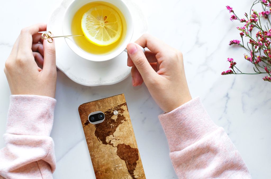 Als je een hoesje koopt met een wereldkaart, kun jij op veilige wijze met je smartphone rond de wereld reizen. Ga je zonder een boekhoesje met wereldkaart het buitenland verkennen, dan loop je veel te groot risico dat je stukken krijgt aan je smartphone. Met als gevolg dat je de belangrijke gebeurtenissen op je reis wellicht niet meer vast kunt leggen om door te sturen aan je vrienden. In het slechtste geval wordt jouw toestel zonder een smartphone hoesje met wereldkaart onbruikbaar. Wij kunnen de wereldkaart bedrukken op een stand case. Een Google Pixel 7A Book Cover beschermt jouw telefoon aan alle kanten en beschikt over een 1 opbergvakje en een speciale standaard. Het hoesje wordt afgesloten met een magneet aan de binnenzijde. De houder aan de binnenzijde is van TPU. Dit stand hoesje met wereldkaart is voor een zeer laag bedrag te bestellen.