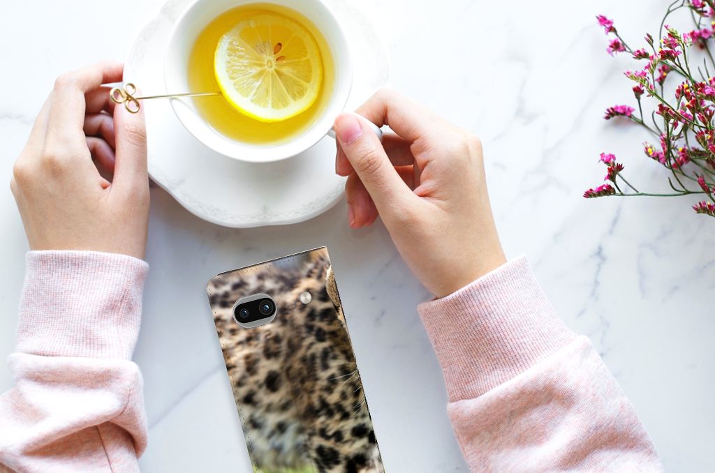 De luipaard is een grote, gespierde katachtige met korte, krachtige poten en een lange staart. Aangezien het op dit hoesje een baby luipaard betreft, zijn deze eigenschappen nog niet volledig tot wasdom gekomen. De kop van de luipaard is breed en een beetje rond van vorm met kleine, ronde oren. De snuit is middelgroot, met krachtige kaken en lange snorharen. De vacht van een luipaard is bedekt met veel zwarte vlekken. Kies je voor dit design hoesje, dan zal er van vlekken op jouw smartphone nooit en te nimmer sprake zijn. Het stoere en tegelijkertijd aandoenlijke design staat op een stand case. Een Google Pixel 7A Hoesje maken beschermt jouw telefoon aan alle kanten en beschikt over een 1 opbergvakje en een speciale standaard. Het hoesje wordt afgesloten met een magneet aan de binnenzijde. De houder aan de binnenzijde is van TPU.