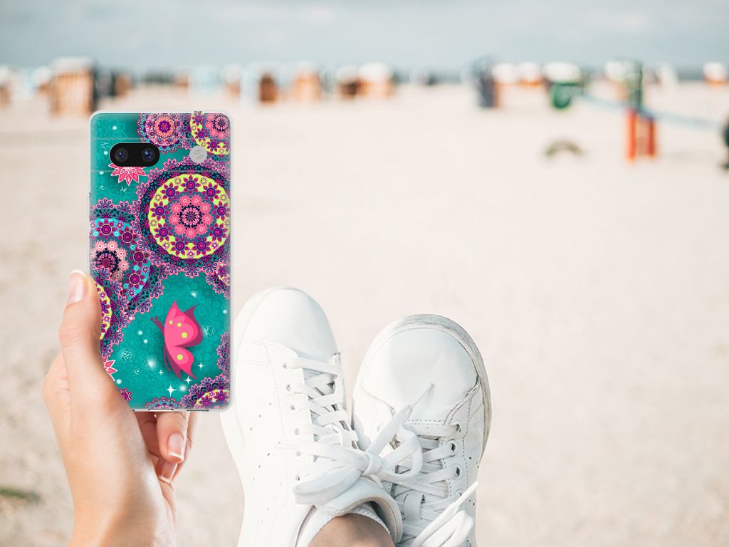 Deze opvallende Google Pixel 7A Hoesje maken met Cirkels en Vlinders is een ware eyecatcher. De meeste vlinders hebben een onopvallende vleugelkleur en dat kun je van de soort op dit hoesje ook zeker wel zeggen. Wij kunnen deze opvallende vlinders en cirkels op een zeer handige tpu case zetten. Deze hoesjes zijn gewild omwille hun flexibiliteit. Met onze geavanceerde printer zetten we de print van opvallende vlinders en cirkels op de achterkant van het hoesje. De case met vlinders en cirkels blijft aan de zijkanten doorzichtig, zodat je maximaal het design van je smartphone behoudt. Verder is je telefoon natuurlijk goed beschermd met deze tpu case met print van blauwe vlinders. De bovenkant wordt bedrukt, de zijkanten niet. Met een screenprotector bescherm je ook het scherm maximaal.