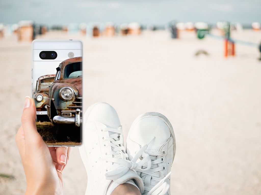 Autoliefhebbers met een voorkeur voor vintage zullen in hun nopjes zijn met dit design hoesje. We hebben een boekhoesje met print van Vintage Auto speciaal op maat gemaakt voor jouw smartphone. Door de achtergrond van dit hoesje krijgt de case met vintage auto’s echt een mooie retro look. Een Google Pixel 7A Siliconen Hoesje met foto is een zeer flexibel hoesje. Dit komt onder andere door het elastische en onbreekbare materiaal waarvan de hoes is gemaakt. Verder is de case zeer praktisch. Wat denk je bijvoorbeeld van de opstaande randen aan de voorkant. Verder beschikt de case ook nog eens over alle noodzakelijke uitsparingen. Een TPU case wordt alleen aan de bovenkant bedrukt. De randen blijven volledig doorzichtig.