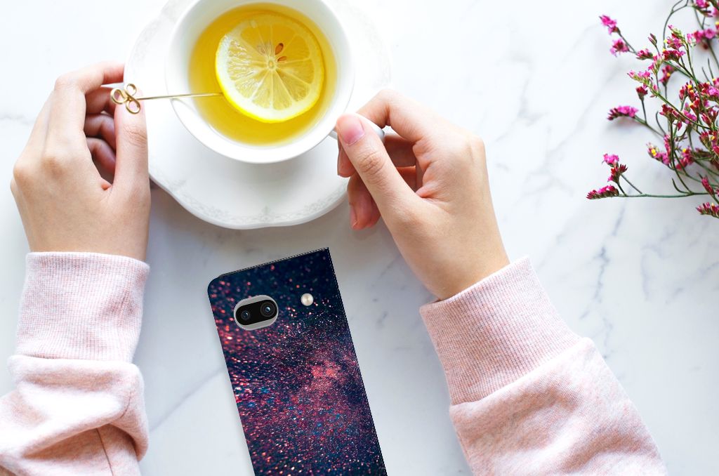 Je waant je in de zevende hemel met dit kunstzinnige, glitterachtige design hoesje met paarse en blauwe kleuren tegen een inktzwarte achtergrond. Het smartphone hoesje heeft ook een wat science fiction achtige allure. Met deze design Stars case zul je zeker opvallen. Als dit je bedoeling is, bestel dat snel dit waanzinnig mooie product voor je Google Pixel 7A. Het telefoonhoesje is van alle gemakken voorzien en combineert een hele fraaie uitstraling met maximaal comfort. Bovendien is het gemaakt van zeer stevig en flexibel materiaal. Het unieke design, door B2C Telecom ontworpen, staat op een Stand Case. Deze case beschermt jouw telefoon aan alle kanten en beschikt over een 1 opbergvakje en een speciale standaard. Het hoesje wordt afgesloten met een magneet aan de binnenzijde. De houder aan de binnenzijde is van TPU.