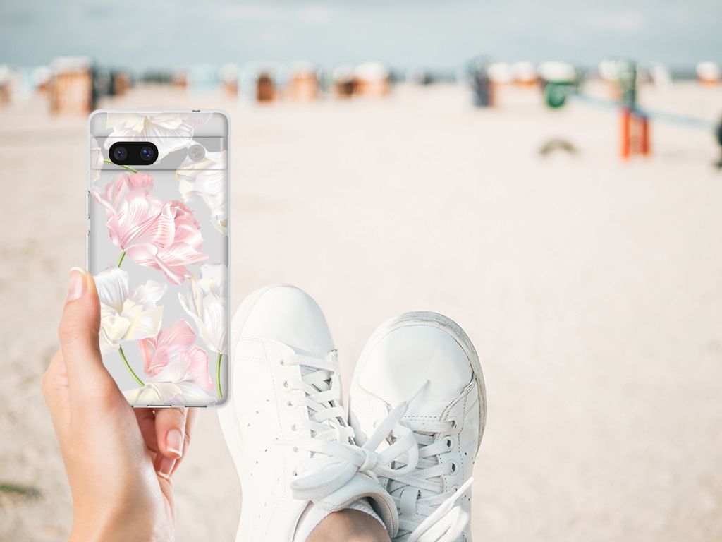 Een bosje bloemen doet een mens (en zijn smartphone) goed. De witte en roze bloemen op deze Google Pixel 7A TPU Case geven jouw smartphone een zeer mooie uitstraling. Je wordt er ook meteen een stuk rustiger van als je aan het appen of aan het bellen bent. Valt dan je telefoon op de grond, dan zal er dankzij de tpu case met het design Lovely Flowers ontstaan. Helemaal niet als je er een screenprotector bij hebt gekocht. Onze tpu cases met roze en witte bloemen zien er zeer prettig uit en zijn heel praktisch, getuige onder meer de opstaande randen en het flexibele materiaal. Alleen de achterkant van de tpu case wordt bedrukt met roze en witte bloemen. Op deze tpu case kun je trouwens ook een eigen ontwerp zetten. In een paar simpele stappen ontwerp je zelf een stand case met daarop jouw favoriete bloemen.
