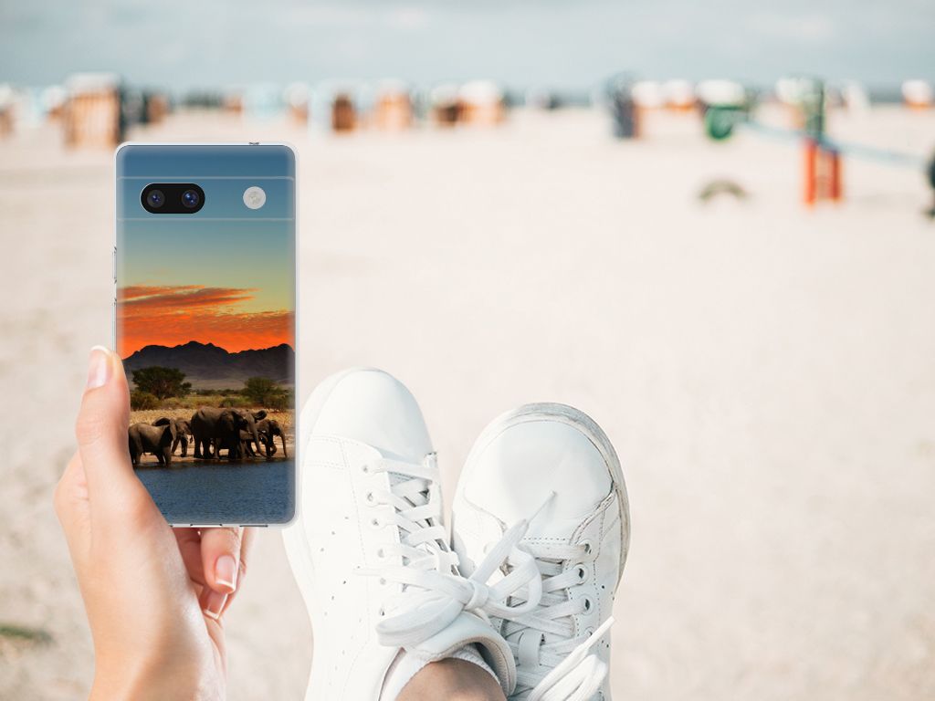 Dit hoesje is zo sterk als een olifant. Dat is goed nieuws, want jouw telefoon heeft een zeer goede bescherming nodig. Dat krijg je met dit design hoesje met print van Olifanten. De Afrikaanse olifant, het allergrootste landdier ter wereld, heeft waarschijnlijk het meest te lijden gehad van stroperij om het ivoor. Deze dieren verdienen dus een goede bescherming, net als jouw smartphone. Met een Google Pixel 7A TPU Hoesje met olifant erop krijg je dit zeker voor elkaar. De tpu case beschermt vooral de achterkant en zijkanten van je telefoon en is gemaakt van onbreekbaar materiaal. De sterke olifant komt zeer goed tot zijn recht op deze case, die zeer flexibel is. Alleen de bovenzijde van de case wordt bedrukt met olifanten, de zijkanten blijven transparant.