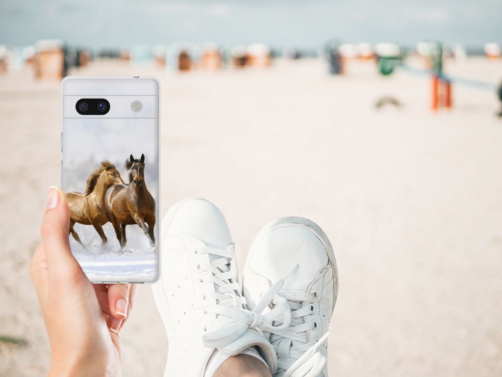 Voor de paardenliefhebbers onder ons hebben we onze collectie uitgebreid met dit design hoesje met print van paarden. Vroeger hield de mens vooral werkpaarden, inmiddels hebben we vriendschap gesloten met het paard. Vandaar dat het ook een favoriet dier is op onze smartphonehoesjes, zoals deze tpu case. Een TPU Hoesje voor de Google Pixel 7A met Paarden is niet alleen super mooi en chique, maar ook nog eens zeer flexibel. Verder is de case schokabsorberend en heeft het opstaande randen. Zie je liever je eigen paard terug op een hoesje. Dat kan! Door zelf een uniek hoesje te ontwerpen, met eigen foto’s en teksten. De TPU case wordt aan de bovenzijde bedrukt, de zijkanten blijven transparant.