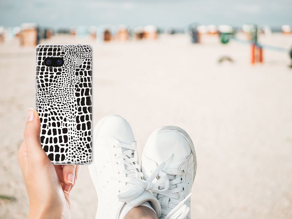 Deze tpu case met zwarte en witte Slangenprint kunnen wij zeer exclusief noemen. Zeker als je er nog een bijzondere tekst van jezelf aan toevoegt, zoals je eigen naam in een sierletter. Jouw tpu case krijgt dan een persoonlijke uitstraling, net nog een beetje specialer dan dit hoesje met zwarte en witte slangenprint. Wat niets afdoet van de exclusiviteit van deze tpu case met zwarte en witte slangenprint. Ben jij toe aan een stoer en opvallend Google Pixel 7A TPU Hoesje? Pak dan dit design met print van slangenhuid als basis. Het tpu hoesje is zeer flexibel en wordt alleen aan de bovenzijde bedrukt. De randen van dit flexibele hoesje blijven doorzichtig. Jij bent ervan verzekerd dat jouw smartphone tegen een stootje kan met dit tpu hoesje met zwarte en witte slangenprint.