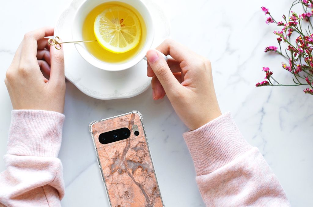 Ben je op zoek naar een uniek telefoonhoesje voor je Google Pixel 8 Pro? Dan ben je bij B2C Telecom aan het juiste adres! Speciaal voor jou hebben we dit prachtige Marmer Oranje design in onze collectie hoesjes opgenomen. Het design wordt bedrukt op een Anti-Shock Hoesje en is gemaakt van flexibel rubber. Het hoesje is perfect voor de actieve smartphonegebruiker door de opstaande randen/hoeken. Denk aan mensen die veel sporten, reizen of wandelen en net iets meer zekerheid willen als het op hun geliefde telefoon aankomt. Het design wordt alleen aan de bovenkant van het hoesje bedrukt en de randen blijven transparant. Aan de zijkanten zijn uitsparingen gemaakt waardoor je met gemak alle knoppen en poorten kunt bedienen. Wij adviseren om dit hoesje in combinatie met een screenprotector te gebruiken voor een langere levensduur van je telefoon. Wil je dit hoesje nog iets extra's geven? Voeg dan gratis je naam of een quote toe! Is dit design hoesje toch niet helemaal wat je zocht? Ontwerp dan zelf een hoesje in ons ontwerpprogramma.