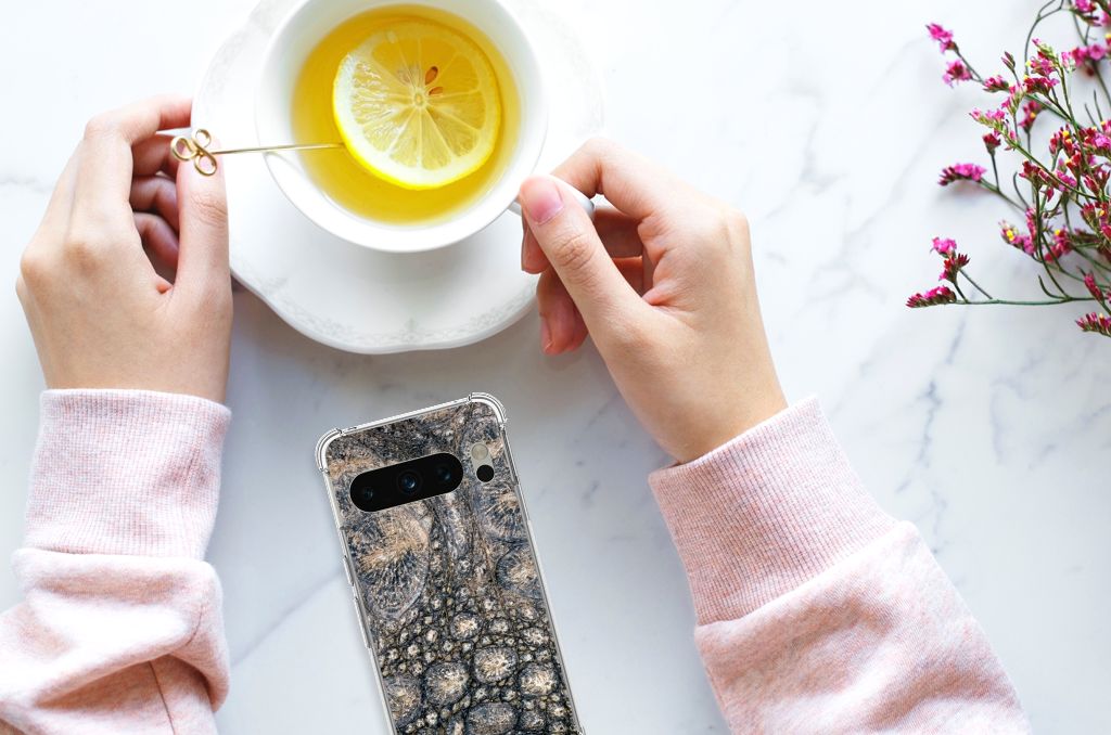 Ben je op zoek naar een uniek telefoonhoesje voor je Google Pixel 8 Pro? Dan ben je bij B2C Telecom aan het juiste adres! Speciaal voor jou hebben we dit prachtige Krokodillenprint design in onze collectie hoesjes opgenomen. Het design wordt bedrukt op een Case Anti-shock en is gemaakt van flexibel rubber. Het hoesje is perfect voor de actieve smartphonegebruiker door de opstaande randen/hoeken. Denk aan mensen die veel sporten, reizen of wandelen en net iets meer zekerheid willen als het op hun geliefde telefoon aankomt. Het design wordt alleen aan de bovenkant van het hoesje bedrukt en de randen blijven transparant. Aan de zijkanten zijn uitsparingen gemaakt waardoor je met gemak alle knoppen en poorten kunt bedienen. Wij adviseren om dit hoesje in combinatie met een screenprotector te gebruiken voor een langere levensduur van je telefoon. Wil je dit hoesje nog iets extra's geven? Voeg dan gratis je naam of een quote toe! Is dit design hoesje toch niet helemaal wat je zocht? Ontwerp dan zelf een hoesje in ons ontwerpprogramma.