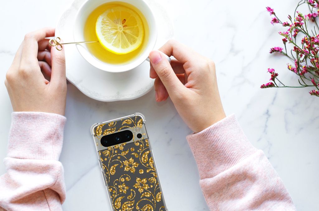 Ben je op zoek naar een uniek telefoonhoesje voor je Google Pixel 8 Pro? Dan ben je bij B2C Telecom aan het juiste adres! Speciaal voor jou hebben we dit prachtige Gouden Bloemen design in onze collectie hoesjes opgenomen. Het design wordt bedrukt op een Case en is gemaakt van flexibel rubber. Het hoesje is perfect voor de actieve smartphonegebruiker door de opstaande randen/hoeken. Denk aan mensen die veel sporten, reizen of wandelen en net iets meer zekerheid willen als het op hun geliefde telefoon aankomt. Het design wordt alleen aan de bovenkant van het hoesje bedrukt en de randen blijven transparant. Aan de zijkanten zijn uitsparingen gemaakt waardoor je met gemak alle knoppen en poorten kunt bedienen. Wij adviseren om dit hoesje in combinatie met een screenprotector te gebruiken voor een langere levensduur van je telefoon. Wil je dit hoesje nog iets extra's geven? Voeg dan gratis je naam of een quote toe! Is dit design hoesje toch niet helemaal wat je zocht? Ontwerp dan zelf een hoesje in ons ontwerpprogramma.