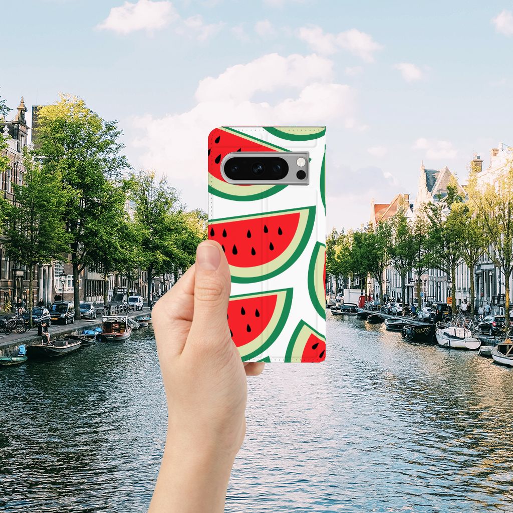 Watermeloenen zijn uitstekende dorstlessers, misschien dat je daarom juist in de zomermaanden extra enthousiast raakt van dit design hoesje Watermelons. Jij blijft gezond als je zo nu en dan een watermeloen neemt, jouw smartphone blijft in tact als je er deze Google Pixel 8 Pro Flip Style Cover omheen doet. De stand case beschermt jouw telefoon aan alle kanten en beschikt over een 1 opbergvakje en een speciale standaard. Het hoesje wordt afgesloten met een magneet aan de binnenzijde. De houder aan de binnenzijde is van TPU. Je kunt ook kiezen voor andere soorten fruit op je hoesje. Kijk maar eens naar onze andere design hoesjes op onze website.