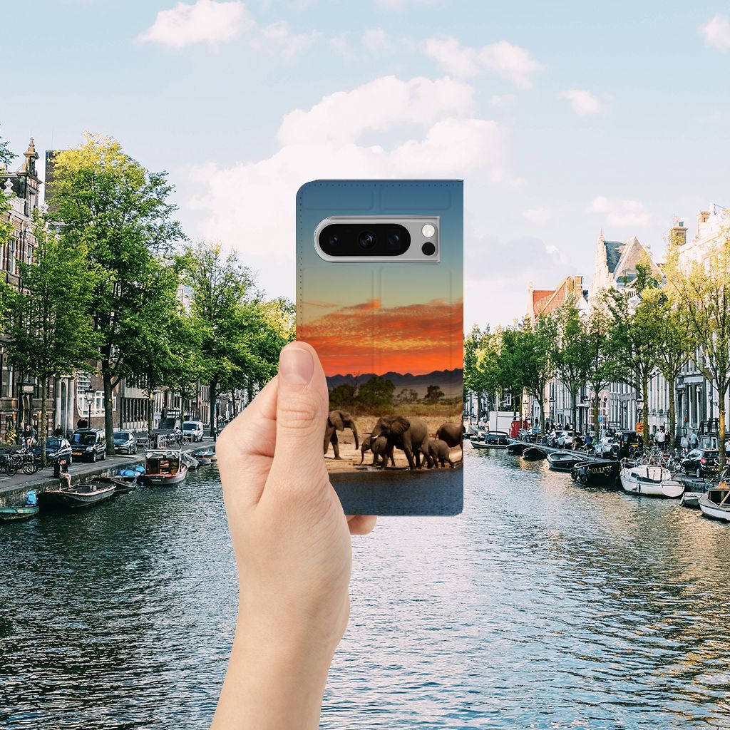 Dit hoesje is zo sterk als een olifant. Dat is goed nieuws, want jouw telefoon heeft een zeer goede bescherming nodig. Dat krijg je met dit design hoesje met print van Olifanten. De Afrikaanse olifant, het allergrootste landdier ter wereld, heeft waarschijnlijk het meest te lijden gehad van stroperij om het ivoor. Deze dieren verdienen dus een goede bescherming, net als jouw smartphone. Met een Google Pixel 8 Pro Hoesje maken met olifant erop krijg je dit zeker voor elkaar. De stand case beschermt alle zijden van je telefoon en heeft aan de binnenzijde een vakje waarin je een pasje kunt opbergen. De sterke olifant komt zeer goed tot zijn recht op deze case, die aan de binnenkant een houder heeft van tpu. Ook de magneet aan de binnenkant is zeer handig. Alle zijden van de case worden bedrukt met olifanten.