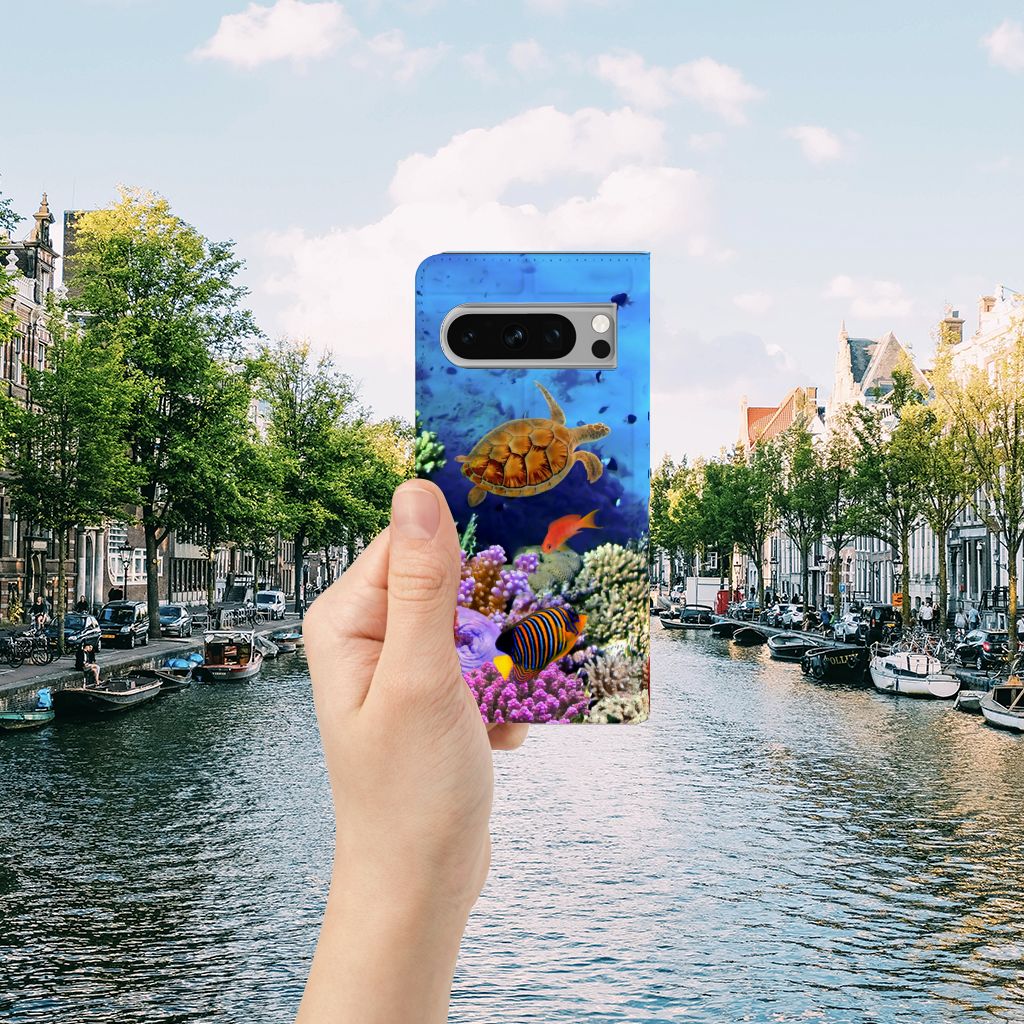 Dit kleurrijke hoesje met tropische Vissen is een ware eyecatcher. Als je aan het duiken bent en je treft een school aan met dit soort opvallende vissen, dan heb je een geweldige ervaring. Maar je hoeft er eigenlijk niet per se het water voor in te duiken. Want wij hebben een schitterende verzameling vissen op dit design hoesje gezet. Met onze zeer geavanceerde printer zetten we de afbeelding van vissen op alle zijden van de Google Pixel 8 Pro Hoesje maken. De case heeft aan de binnenkant een vakje waarin je jouw creditcard of ander pasje kwijt kunt. Ga je een dagje vissen, dan hoef je de portemonnee dus ook niet op zak te hebben. Verder is je telefoon natuurlijk maximaal beschermd met deze stand case met print van tropische vissen. De houder aan de binnenzijde van het design hoesje met vissen print is van TPU.