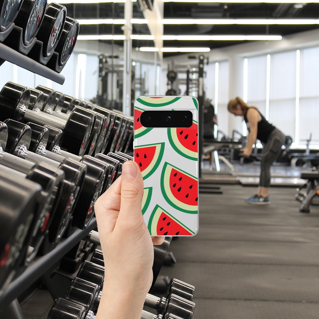 Watermeloenen zijn uitstekende dorstlessers, misschien dat je daarom juist in de zomermaanden extra enthousiast raakt van dit design hoesje Watermelons. Jij blijft gezond als je zo nu en dan een watermeloen neemt, jouw smartphone blijft in tact als je er deze Google Pixel 8 Pro Siliconen Case omheen doet. Deze tpu case wordt alleen aan de bovenkant bedrukt met watermeloenen is zeer flexibel. De randen van het hoesje blijven transparant. Je kunt ook kiezen voor andere soorten fruit op je hoesje. Kijk maar eens naar onze andere design hoesjes op onze website.