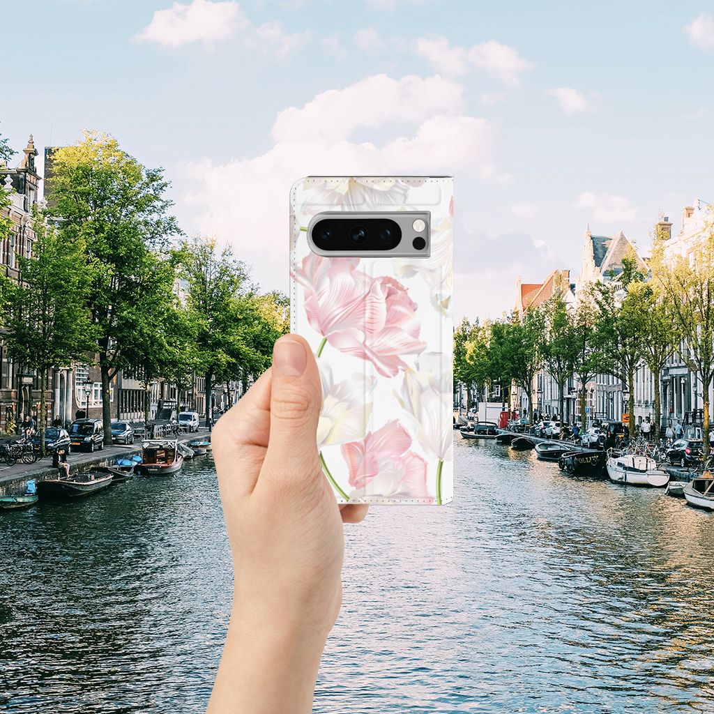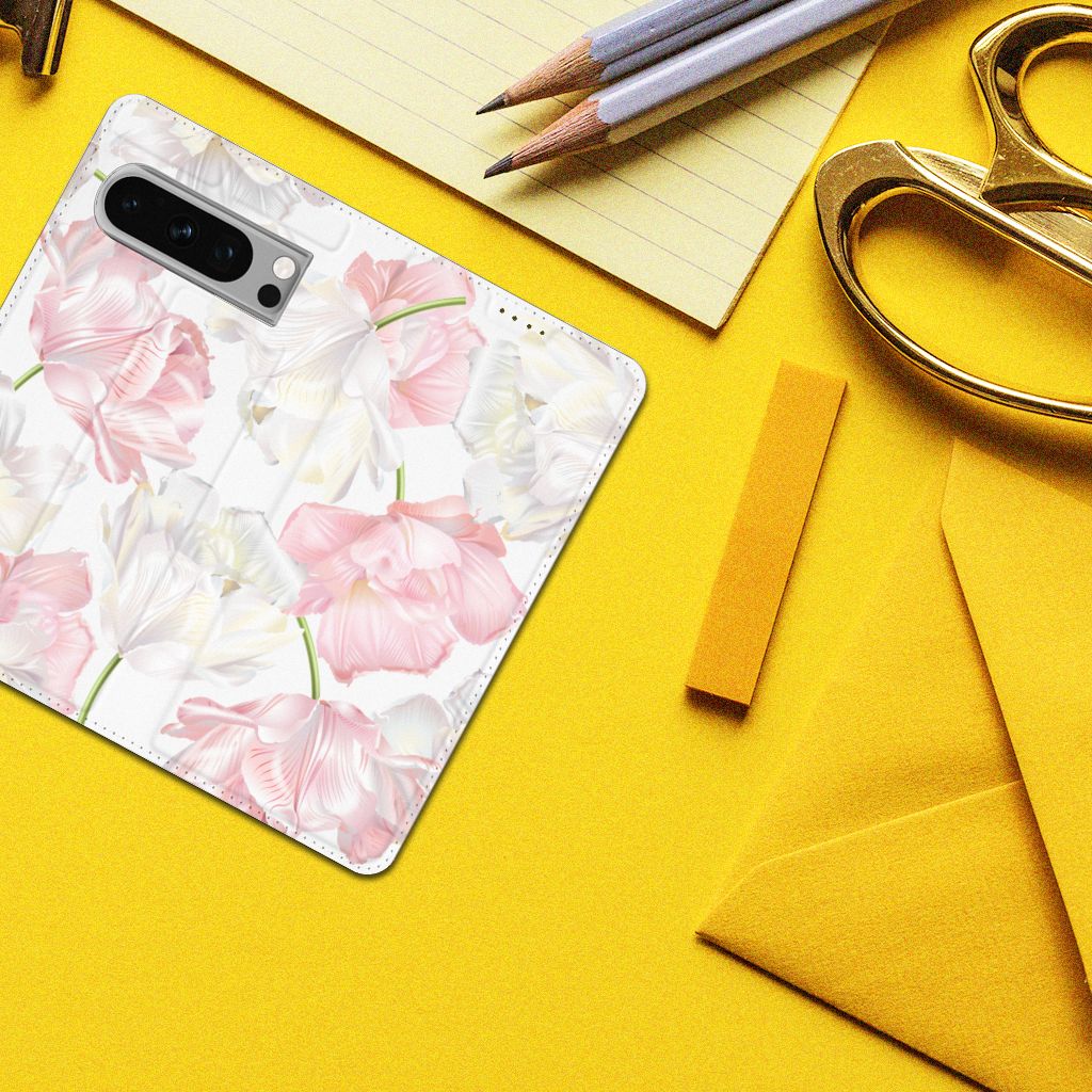 Een bosje bloemen doet een mens (en zijn smartphone) goed. De witte en roze bloemen op dit Google Pixel 8 Pro Smart Cover geven jouw smartphone een zeer mooie uitstraling. Je wordt er ook meteen een stuk rustiger van als je aan het appen of aan het bellen bent. Valt dan je telefoon op de grond, dan zal er dankzij de stand case met het design Lovely Flowers ontstaan. Onze stand cases met roze en witte bloemen zien er zeer prettig uit en zijn heel praktisch, wat blijkt uit onder meer het vakje aan de binnenkant en de handige standaard waarmee je de smartphone rechtop op tafel neer kunt zetten. De roze en witte bloemen passen goed op alle zijden van de case. Op deze stand case van leer en TPU (houder aan de binnenkant) kun je trouwens ook je eigen bloemige ontwerp zetten. In een paar simpele stappen maak je zelf een stand hoesje met daarop jouw mooiste bloemen.